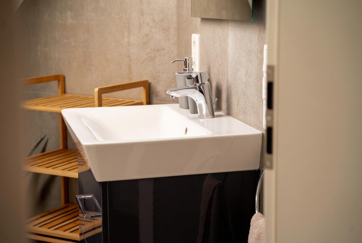 Die voll ausgestattete Küche mit Herd, Backofen, Mikrowelle, Kühlschrank, Geschirrspüler und umfangreichem Zubehör lässt keine Wünsche offen – hier kochen Sie wie zu Hause.