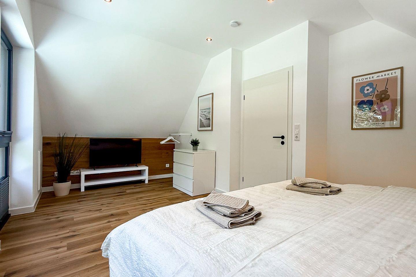Das Haus verfügt über drei gemütliche Schlafzimmer, jeweils mit eigenem Smart-TV. Ein offener Wohn- und Essbereich mit großen Fenstern sorgt für viel Tageslicht und eine angenehme Wohlfühlatmosphäre. Zwei moderne Bäder mit ebenerdiger Dusche bieten höchsten Komfort.