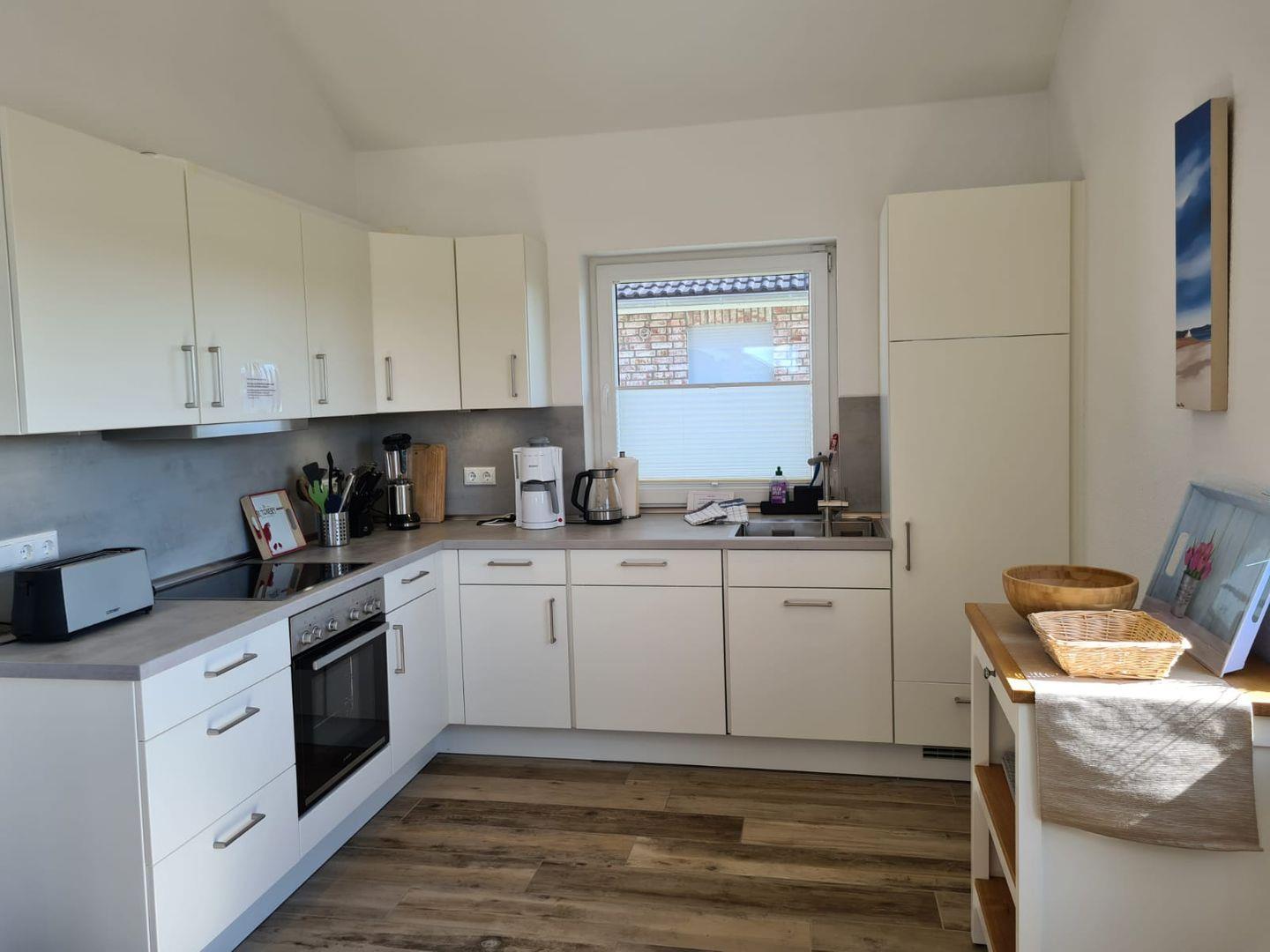 Wir bieten ausreichend Platz für 6 Personen in drei Schlafzimmern, die mit Massivholzmöbeln ausgestattet sind (ein Doppelbett, zwei Familienkojen) und eine große Wohnküche mit umfangreicher, neuwertiger Ausstattung (großer Kühlschrank mit Gefrierfach, Geschirrspüler, Kaffeemaschine, smoothie-Mixer, Toaster, Ceran-Kochfeld mit Backofen) und Esstisch mit 6 Plätzen, darüber hinaus eine gemütliche Sitzgruppe mit Kaminofen und schwenkbarem, großem Satelliten TV.