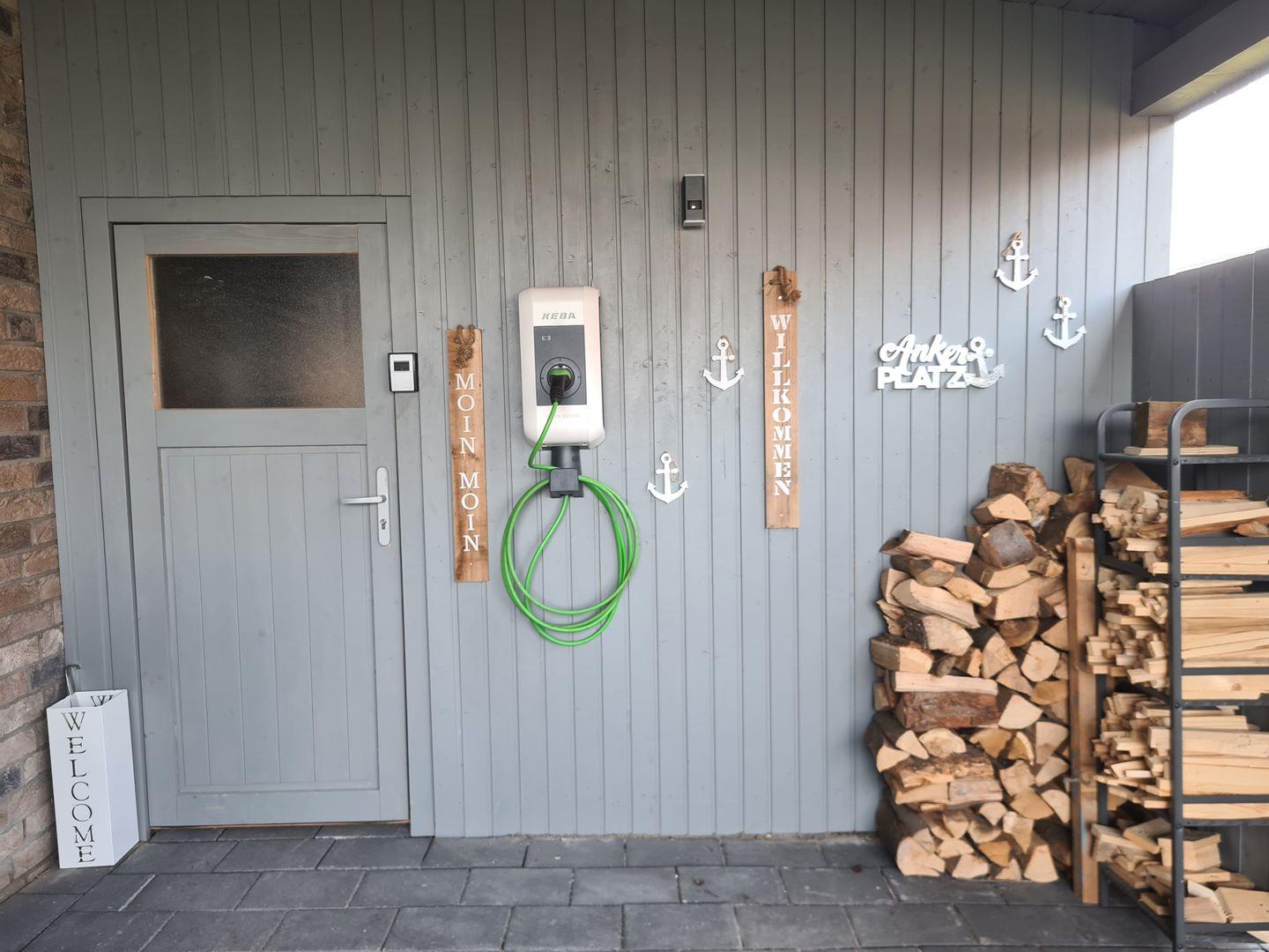 Eine überdachte Terrasse (mit integriertem ausziehbarem Windschutz) lädt zum Verweilen ein. Die kleinere Terrasse vor dem Schlafzimmer verführt dazu, den Sonnenuntergang vor dem Schlafengehen zu genießen. Es gibt 6 Gartenstühle, 2 Liegestühle und für alle Gartenmöbel sind natürlich passende Polster vorhanden. Ein Grill mit Smoker steht für BBQ-Abende bereit. Ein Sandkasten in Form eines Piratenboots bietet Kindern Spaß und Unterhaltung. Es gibt einen abschließbaren Abstellraum für Ihre Fahrräder. Eine Wallbox ist installiert, so können Sie direkt am Haus Ihr E-Auto aufladen. Die Abrechnung erfolgt hierfür direkt über Kreditkartenzahlung.