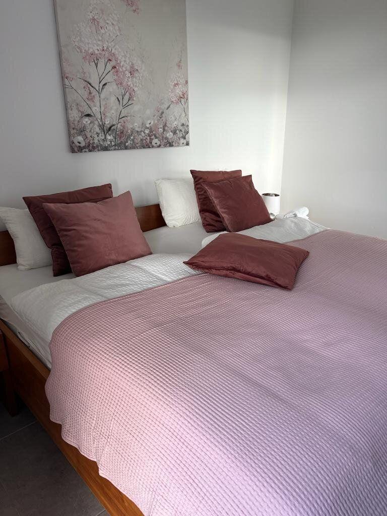 Das neue komplett eingerichtete Ferienhaus ist für vier bis sechs Personen eingerichtet. Das Haus ist barrierefreundlich, verfügt über viel Platz auf der überdachten Sonnenterrasse mit herrlichem Blick über Wiesen und Felder. Das großzügige Wohn- und Esszimmer verfügt über eine gemütliche Couch und eine top moderne Küche mit 6 Plätzen. Es gibt ein Hauptschlafzimmer (Bettgröße 2 x 1,00 m Matratzen) ein kleineres Schlafzimmer mit einer oberen Spielebene oder auch zum entspannen und auch schlafen.