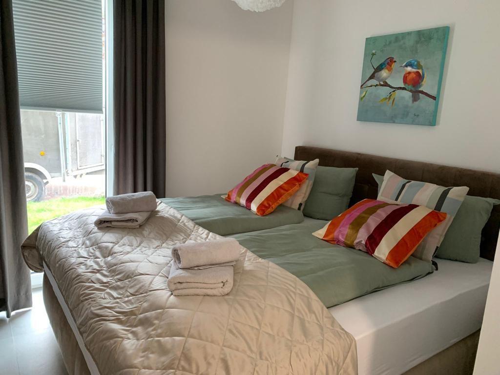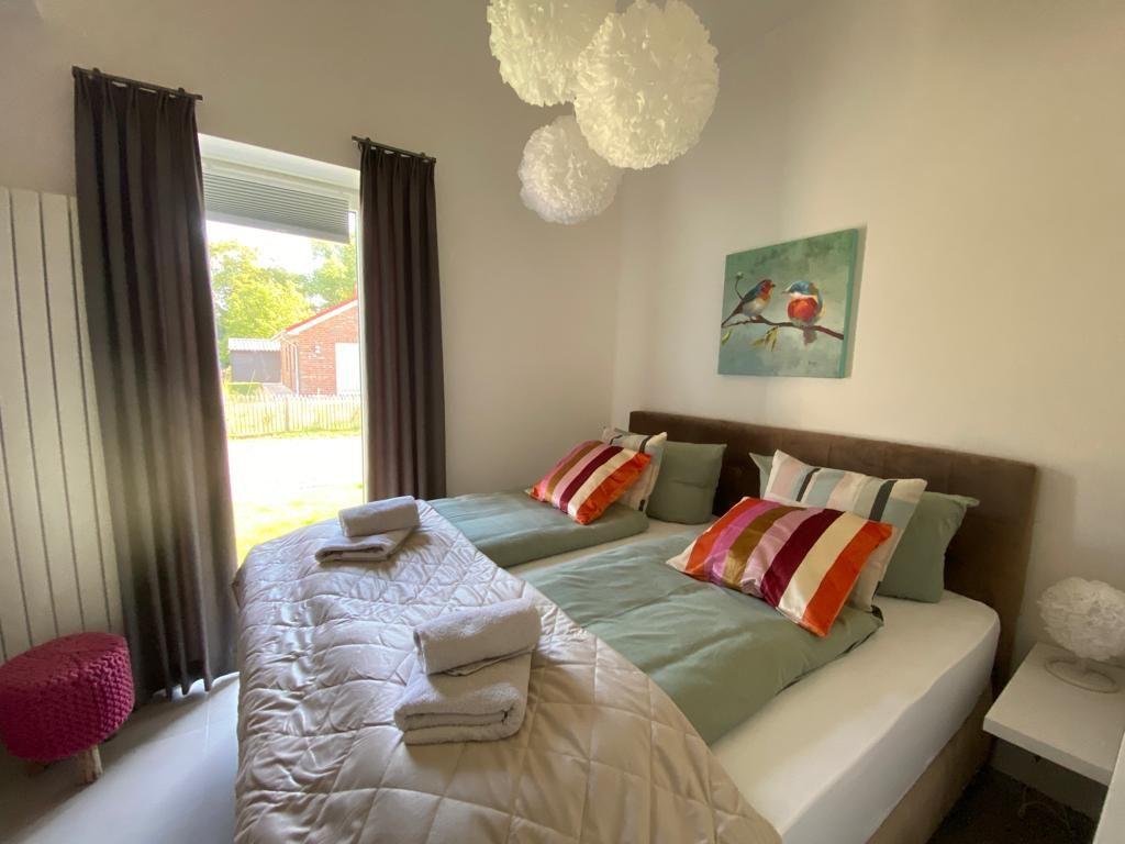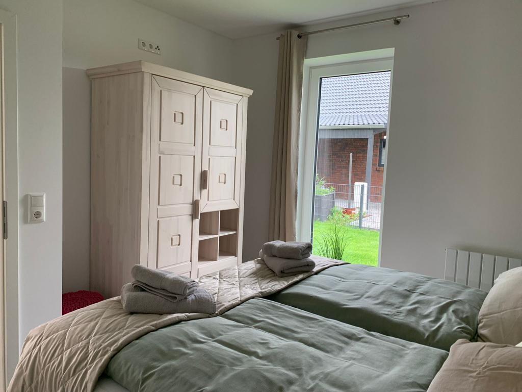 Diese moderne, 75 m² große Ferienwohnung bietet zwei gemütliche Schlafzimmer. Genießen Sie entspannende Stunden auf der überdachten Terrasse mit Ihrem Vierbeiner oder im eigenen Garten.