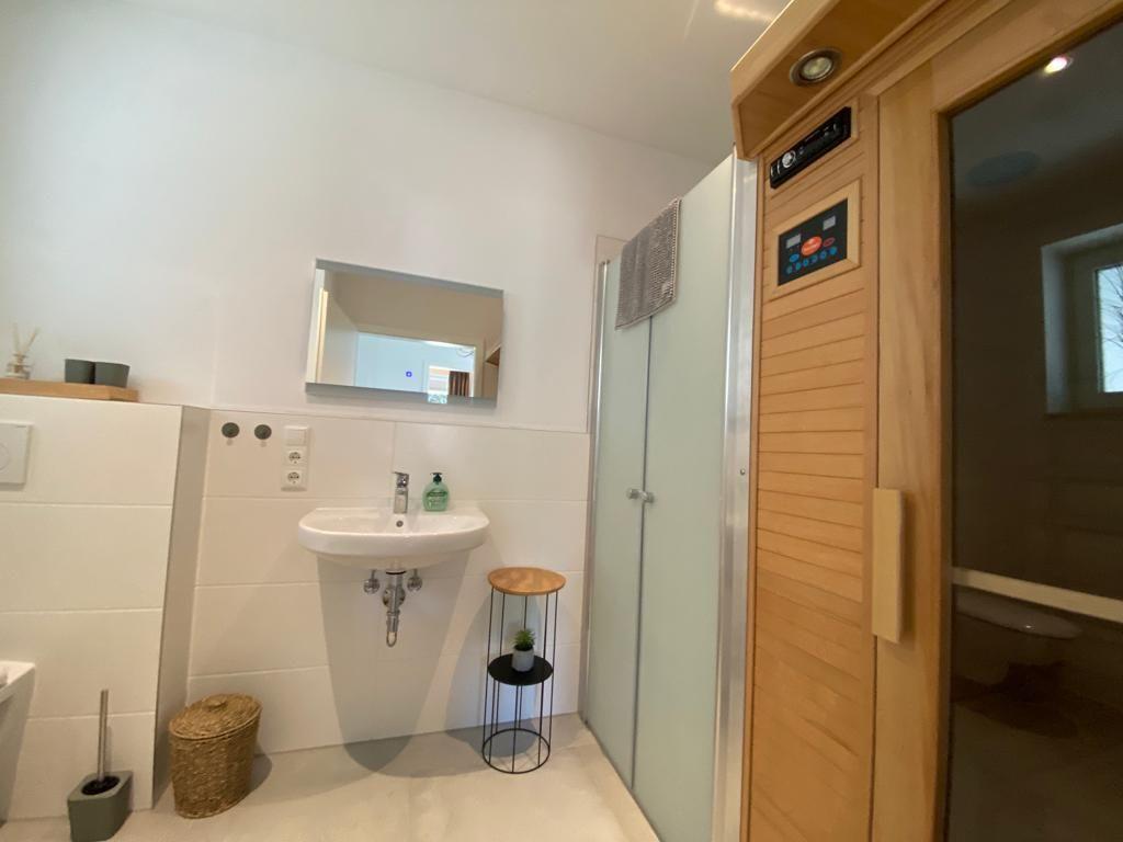 Auch das Badezimmer ist barrierefreundlich ausgestattet und verfügt über eine eigene Privat Infrarotsauna.
