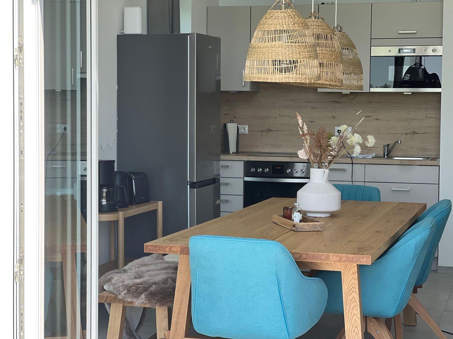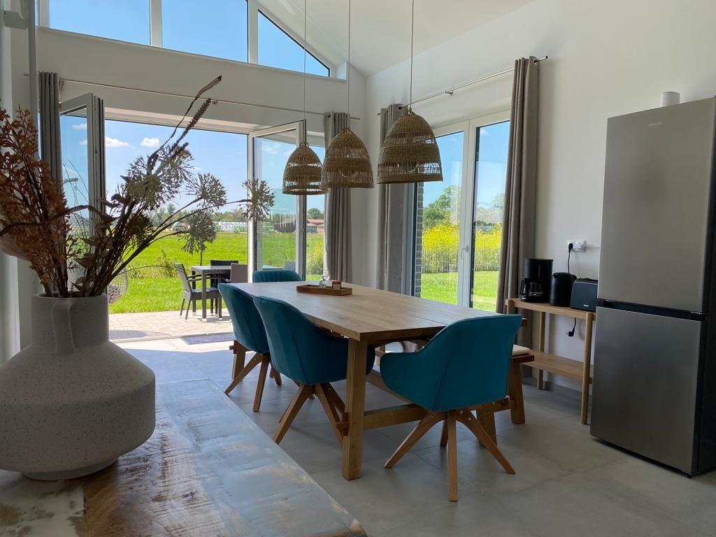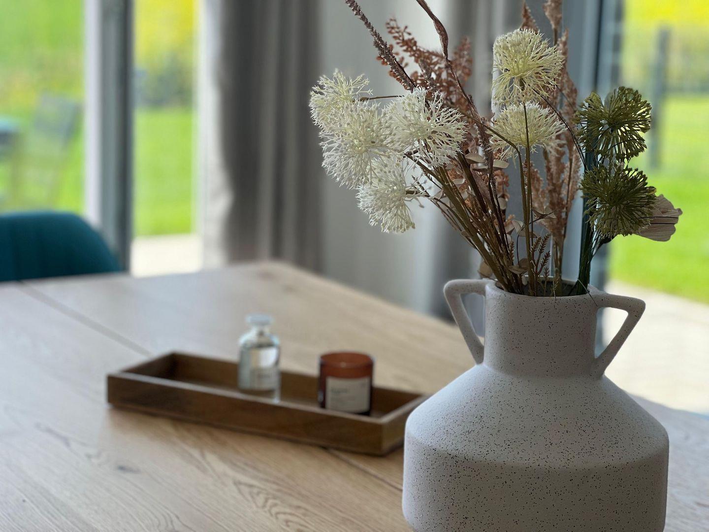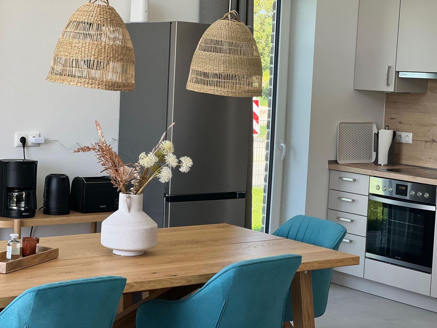 Das fertiggestellte Ferienhaus im Juli 2023 ist für 4-6 Personen eingerichtet. Das Haus ist barrierefreundlich, verfügt über viel Platz und eine Sonnenterrasse mit herrlichem Blick über Wiesen und Felder. Das großzügige Wohn- und Esszimmer verfügt über eine gemütliche Couch und eine top moderne Küche mit 6 Plätzen. Es gibt ein Hauptschlafzimmer ein kleineres Schlafzimmer mit einer, oberen Spielebene oder auch zum entspannen und schlafen.
