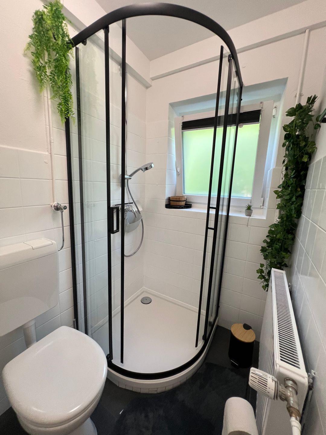 Das Badezimmer ist mit Dusche, WC, Waschbecken, Spiegel und Haartrockner ausgestattet und verfügt über Tageslicht. Warmes Wasser und Heizung sorgen das ganze Jahr über für angenehme Temperaturen. Für Sicherheit sorgen Rauchmelder und Sichtschutz an allen Fenstern.