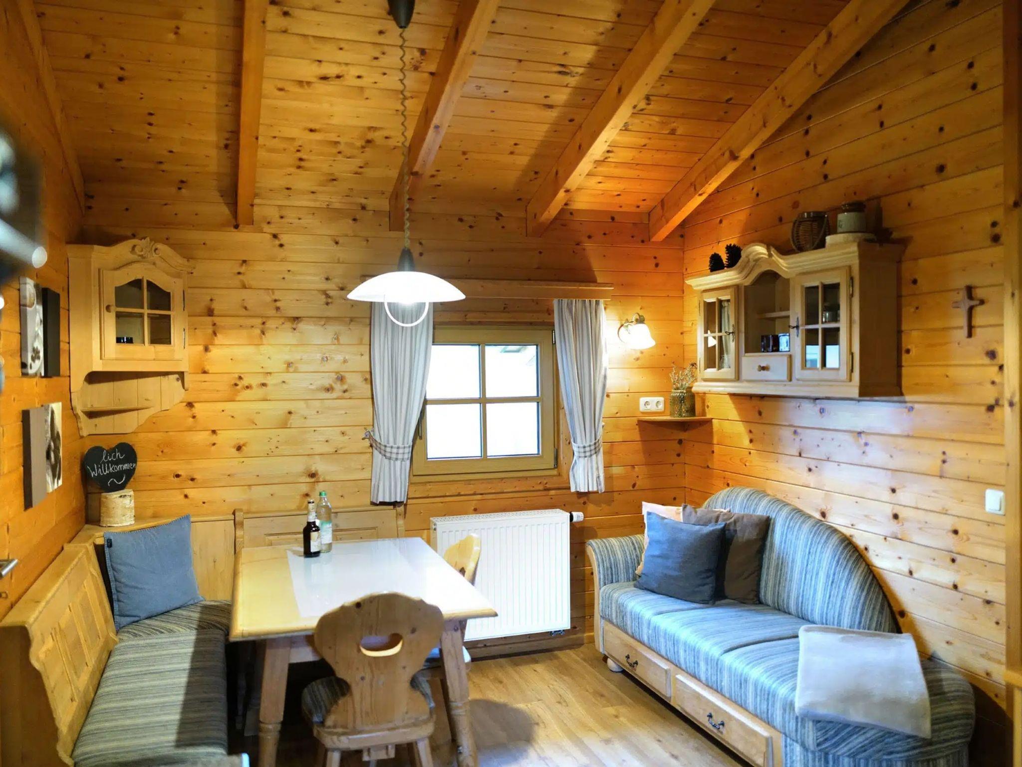 Das Holzhaus „Blumenwiese“ bietet einen wunderschönen Ausblick zur historischen Wallfahrtskirche Wollaberg eingerahmt von Blumenwiesen, Hecken, Obstbäumen und einem großen, eigenen Garten mit überdachter Terrasse der zum Frühstücken, Grillen und Sonnen einlädt. Optimale Belegung: Zwei Erwachsene und zwei Kinder (auf Wunsch kann ein drittes Kinderbett hinzugefügt werden). Auf 50qm Wohnfläche erwarten euch: Zwei getrennte Schlafzimmer: Elternschlafzimmer (Größe Bett 180x200cm) sowie ein Kinderzimmer mit Stockbett (Größe der Kinderbetten jeweils 80x180 cm). Gemütliche Wohnküche mit allen Annehmlichkeiten. Bad mit ebenerdiger Dusche. Die Holzbauweise hat ein ausgleichendes Wohnklima: im Sommer kühlend und im Winter kuschelig warm.