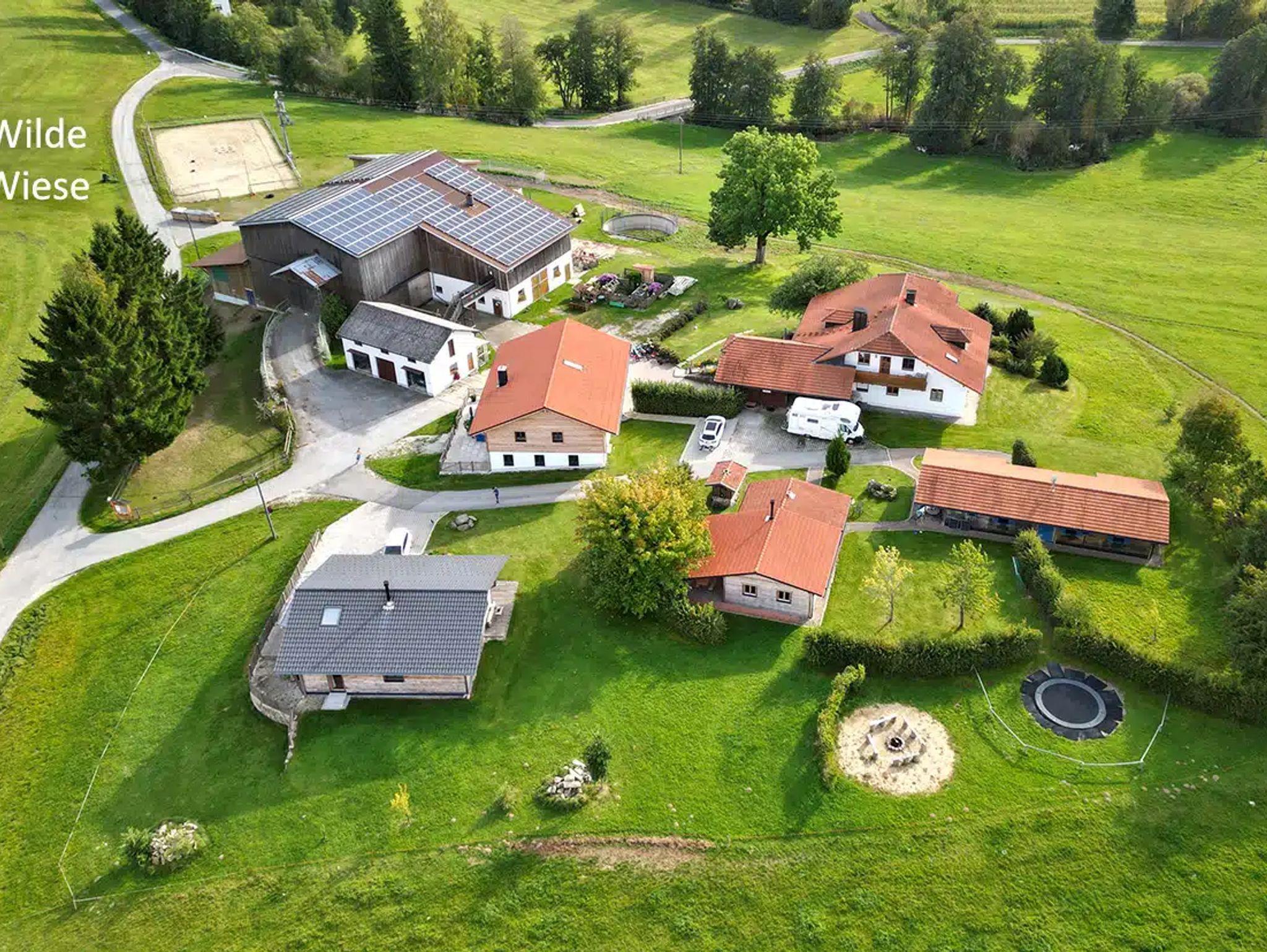 Hier im Dreiländereck zu Österreich und Böhmen - an besonders schöner Stelle und ganz allein (jedoch nicht einsam) - liegt der ökologisch geführte „Rohrhof“ im Naturpark Bayerischer Wald inmitten von Wiesen und Wäldern. Fernab von lärmenden Straßen. Unser BIO-Ferienbauernhof ist ein Paradies für Kinder: Neben der wunderschönen Natur, die unendliche Spielmöglichkeiten hervorbringt, gibt es u. a. ein Boden-Riesentrampolin, eine große Spielscheune sowie einen Spielplatz, das bravste Holzpferd der Welt, jede Menge Tretfahrzeuge, Bogenschießen, viele Streicheltiere, mithelfen beim Versorgen der Tiere, geführtes Ponyreiten, Reitstunden auf Anfrage; Grillmöglichkeit, Lagerfeuerplatz und Pizza-Steinbackofen für sommerlich-gesellige Abende mit den Gästen. Bei uns finden Familien Erholung – ganz ohne Stundenplan. Eine Aus-Zeit für Klein und Groß(-Eltern) das ganze Jahr über. Aber auch romantische Zweisamkeit und aktive Alleinreisende kommen nicht zu kurz. Ankommen im Hier&Jetzt. Gegenwart spüren. Einfach mal loslassen. Kraft tanken. Bei uns hat man viel Raum für Zeit. Das Gedankenkarussell wird langsamer. Die Uhren ticken auf dem Land etwas anders – lass dich drauf ein! Wir bewirtschaften unseren BIO-Ferienbauernhof im Einklang mit der Natur und achten dabei auf Regionalität. Unsere Tiere genießen die grasgrünen Weiden, Wärme liefert der eigene Wald, mit Strom versorgt uns die Sonne und das Lebenselixir Wasser entspringt der hauseigenen Quelle. Bei uns gibt es kleine, regionale Spezialitäten. Erde dich mit frischer Luft, sprudelndem Quellwasser und romantischem Lagerfeuer. Unsere Ferienhäuser in Holzbauweise verfügen über alle Annehmlichkeiten, die zu einem entspannten Urlaub gehören. Zwei getrennte Schlafzimmer, Wohnküche mit komplett ausgestatteter Küche, Sitzbereich, Essecke, Smart-TV, Bad mit ebenerdiger Dusche, eigener Eingangsbereich mit Garderobe, überdachte Terrasse. Separat und exklusiv vor Ort buchbar: „Schwitzhütt´n“ mit finnischer Sauna, Infrarotkabine, Liegebereich, Kaminofen sowie ein uriger großer Aufenthaltsraum „Woidstub´n“ für befreundete Familien mit Küche, Kaminofen, großen Eichentischen, Smart-TV ... Der Hof liegt in 650m Höhenlage im Dreiländereck zu Böhmen, Österreich und Bayern im Herzen des Bayerischen Waldes. Alleinlage, mitten im Naturpark Bayerischer Wald. Passau – das Venedig des Nordens- liegt 30 km südlich von uns entfernt. Ideales Wandergebiet, E-Bikes kommen bei uns zu vollem Einsatz, da die hügelige Landschaft etwas anspruchsvoll ist. E-Ladestation am Hof. Sehenswürdigkeiten wie der Nationalpark Bayerischer Wald mit Baumwipfelpfad, unsere Bayerwaldberge wie Dreisessel, Haidel, Lusen und Rachel, Freilichtmuseum, Glasmacherorte, Granitzentrum in Hauzenberg oder die Städte Linz und Krummau (Krumlov) laden zum Kennenlernen ein. Skigebiete erreichen Sie in kurzer Fahrzeit; unser Hausberg, der Oberfrauenwald/Geiersberg liegt nur 2 km von uns entfernt. Die Adalbert-Stifter-Loipe - eine still gelegte Bahntrasse - kann im Winter als Langlaufloipe und im Sommer als idealer Fahrradweg bis nach Tschechien genutzt werden.