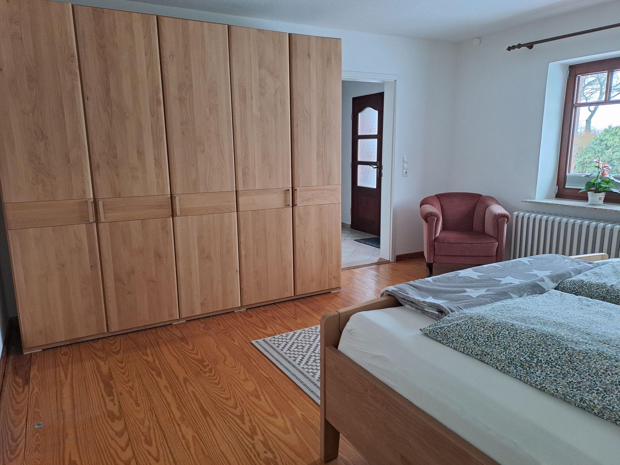 SZ 2: das zweite Schlafzimmer verfügt über ein großes Doppelbett (2,00 x 2,00 m) und Kleiderschrank. Hier gibt es eine abschließbare Verbindungstür zum dahinterliegenden, kleineren dritten Schlafzimmer.