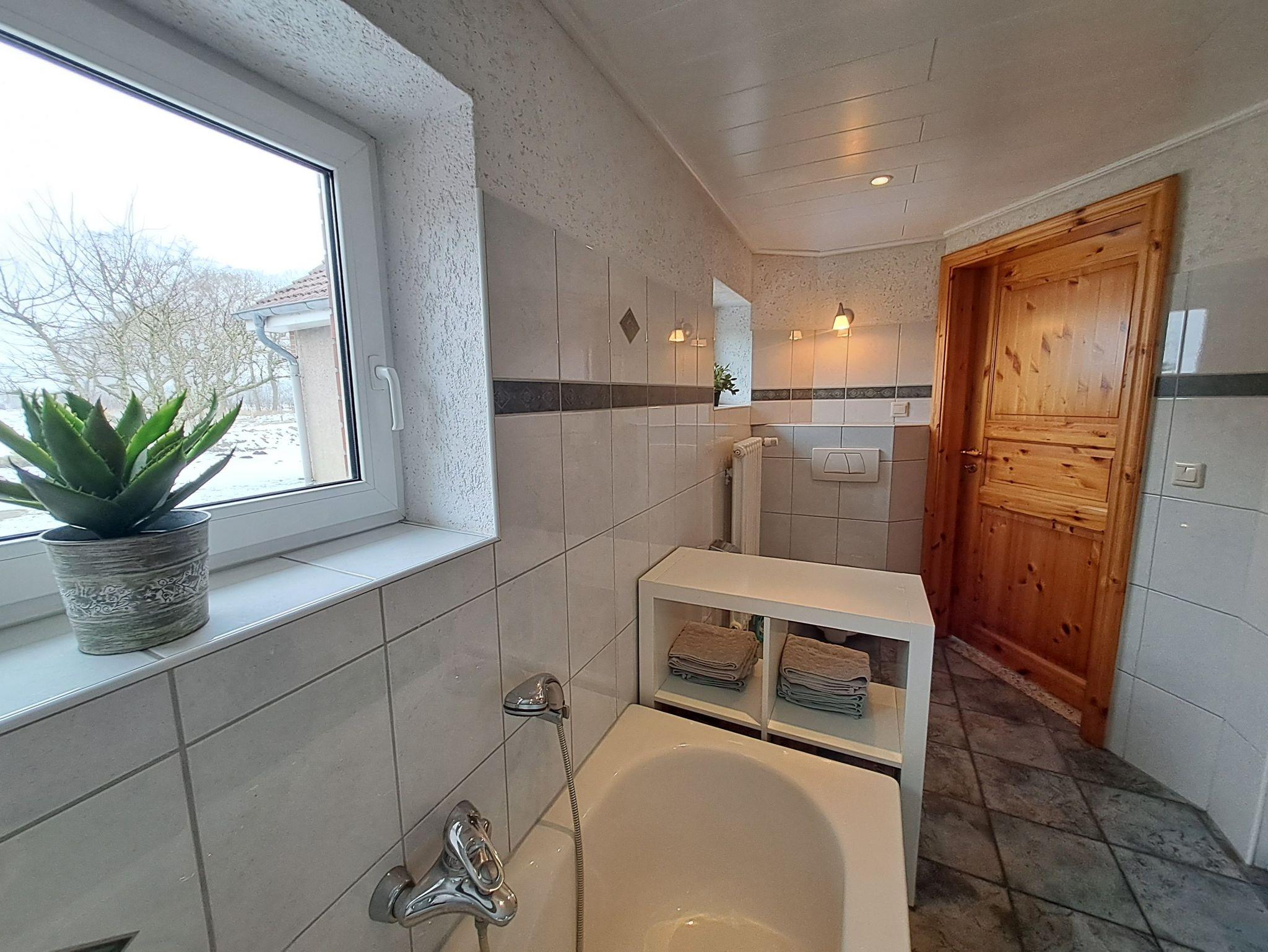 Der große Garten und die Sitzmöglichkeiten vor dem Haus oder unter dem Carport laden zum entspannen und entschleunigen ein. Auf dem daneben liegenden Hof der Vermieter gibt es viele Kleintiere und Spielmöglichkeiten für Kinder. Ob auf dem Trampolin, der Rutsche oder bei den Minischweinen: hier gibt es überall etwas zu entdecken. Bei Bedarf bekommt man sogar täglich frische Eier direkt vom Hof.