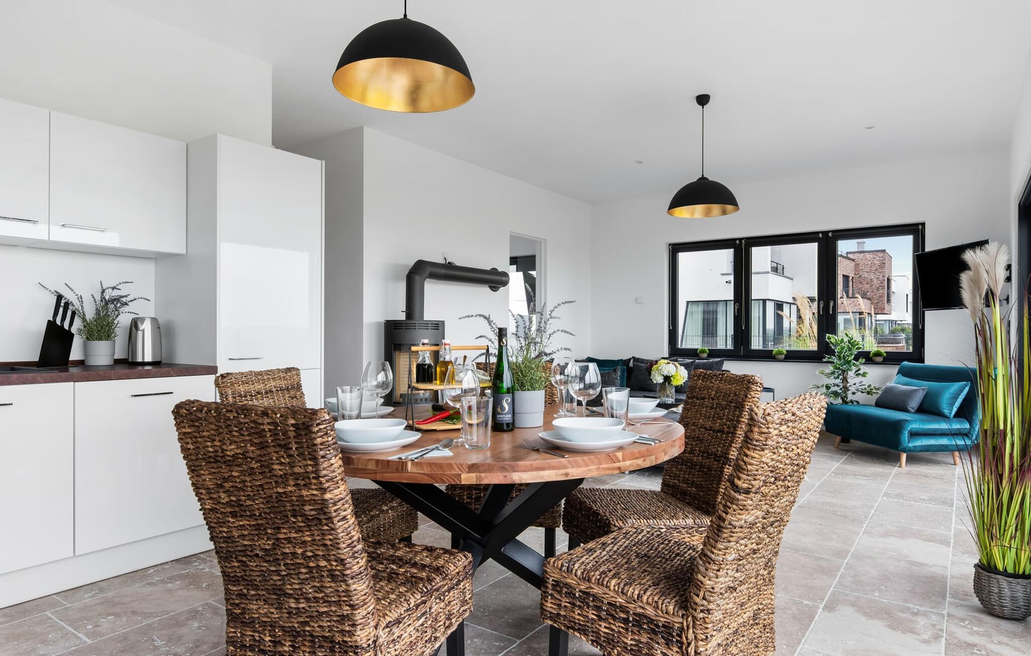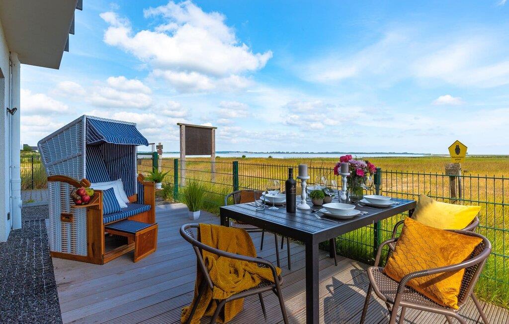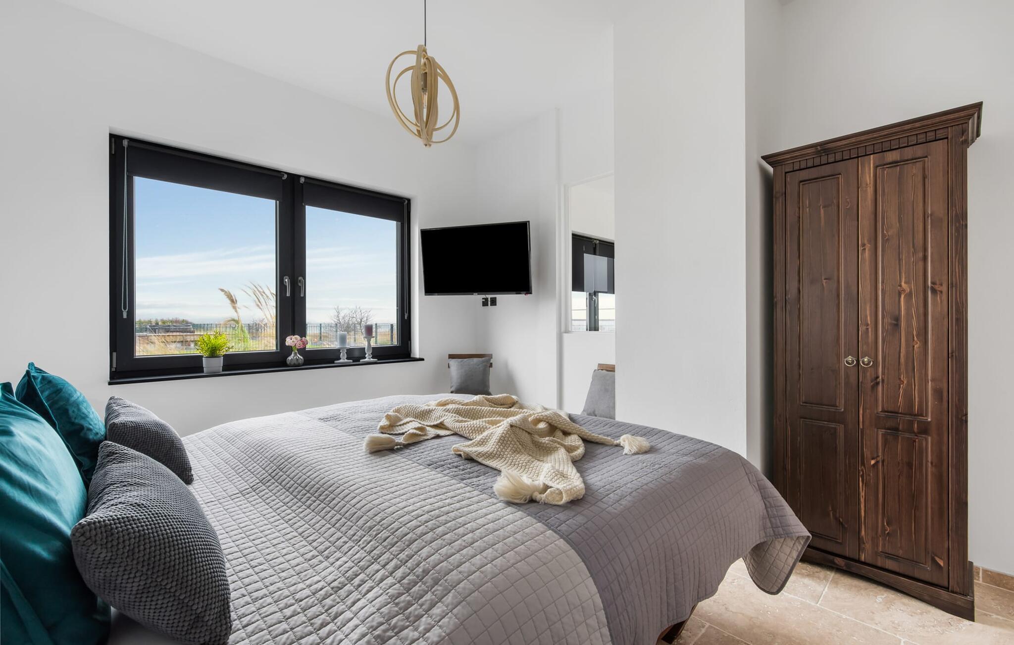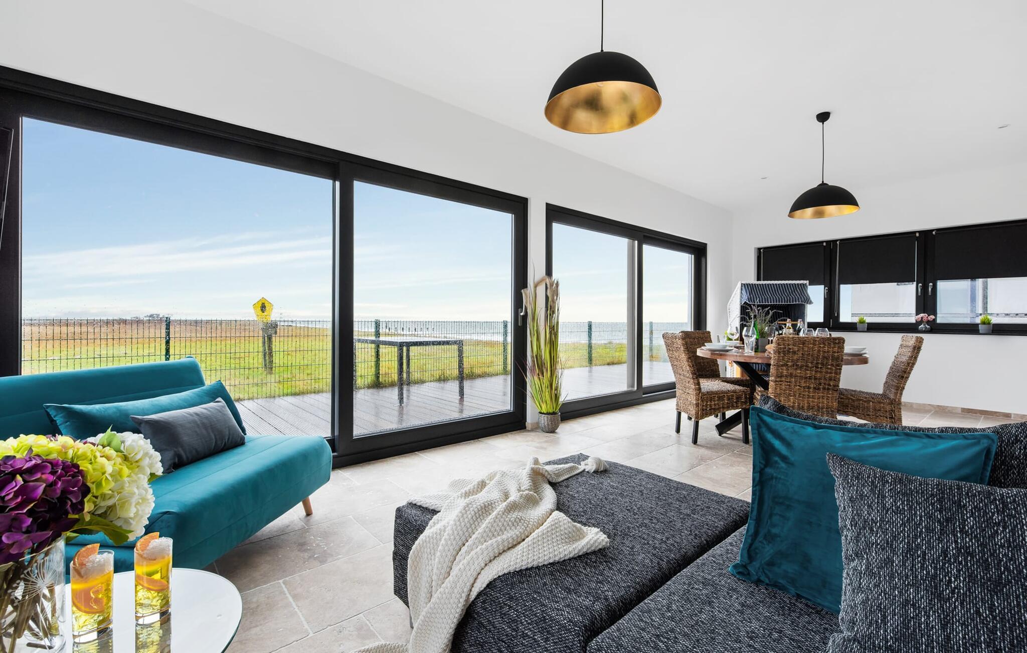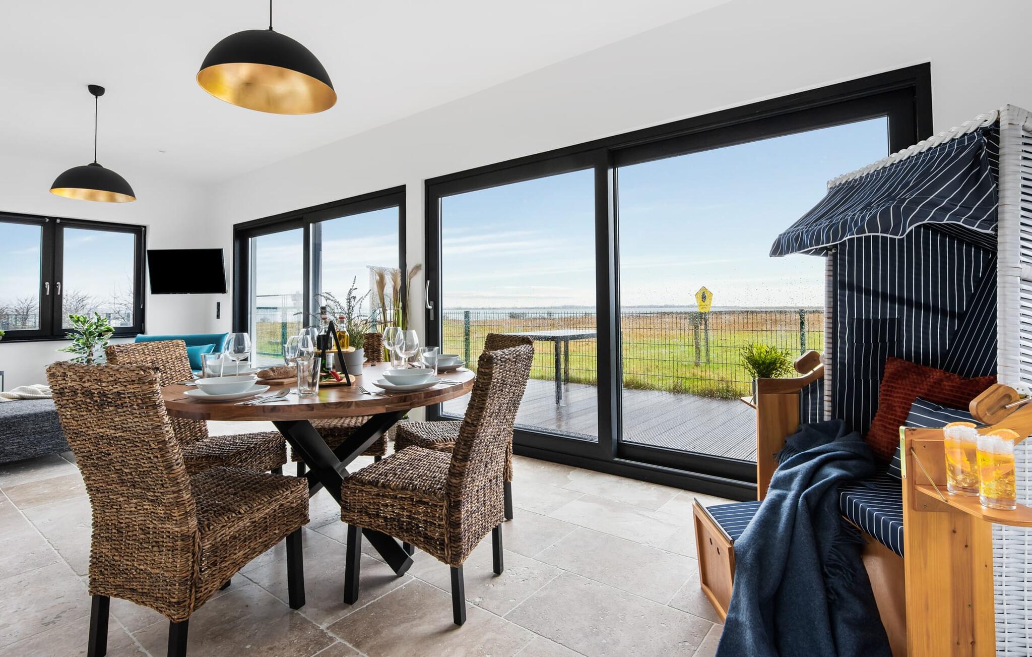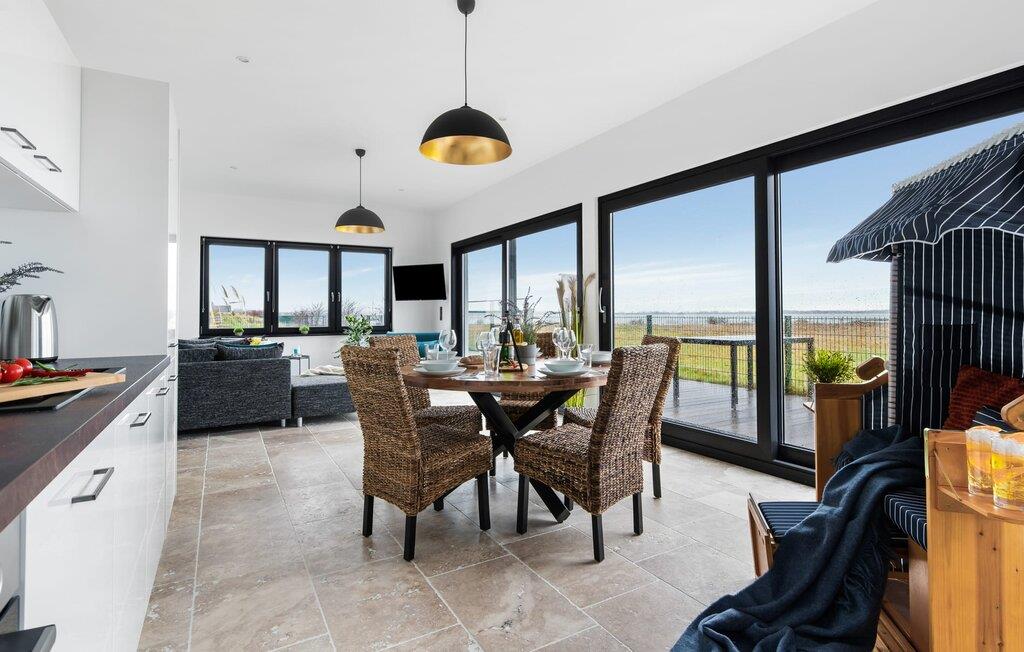 At ankomme og føle sig godt er garanteret her. Enhver, der stræber efter afslapning i eksklusiv stil, vil finde deres nye yndlingsferiehus i ferielejligheden Jazz Armstrong. Rummelig og designet i ét plan med en imponerende udsigt over Sleien og Østersøen, denne lys-oversvømmede oase af velvære byder jer velkommen lige ved siden af naturreservatet. Her kan I observere de vilde fuglearter, der lever i det direkte tilstødende naturreservat, samt får, der kommer helt op til hegnet. Idyllen rundes af af Schimmelünde fyrtårn og den hvide sandstrand, som kan nås på blot et minuts gang. Den rummelige stue/spisestue med en vedhæftet, rummelig terrasse i stueetagen byder på plads nok til op til fem personer. Naturstensgulve af italiensk, let travertin sikrer sammen med det økologiske byggekoncept af murstensmurværk og kalkpuds et særligt indeklima og komfort. Takket være gulv-til-loft vinduer bliver ferielejligheden oversvømmet med lys. Det fuldt udstyrede Bosch spisekøkken tilbyder alle bekvemmeligheder. Åbent designet, kan I endda se Slien og Østersøen, mens I laver mad. Hvad vil I have af havet? To soveværelser giver plads til fire voksne til at sove og drømme. Det store soveværelse er indrettet med en dobbeltseng og et fladskærms-tv, det andet soveværelse har to enkeltsenge. En sovesofa i opholdsstuen gør det muligt for en person mere at overnatte. Bruserummet i natursten lavet af brasiliansk skifer har en finsk sauna og en stor regnbruser. Ægte SPA-øjeblikke kan opleves her! Et gæstetoilet giver ekstra komfort. Takket være gulvvarme og pejs er lejligheden ideel til enhver sæson. Den kæmpestore terrasse, der støder direkte op til naturreservatet, giver mulighed for at spise, slappe af eller hygge læsning udenfor. Der er en privat parkeringsplads lige foran huset. Der er 6 fælles cykelstativer foran ferielejligheden. Denne fantastiske ferielejlighed i stueetagen er designet i stueetagen og tilbyder også gæster med begrænset bevægelsesfrihed fuld feriekomfort i top. Vores favoritsted: Uanset om det er morgen, frokost eller aften, er der altid noget at observere i det direkte tilstødende naturreservat! Bemærk venligst: OstseeResort Olpenitz er meget populært, og der bygges fortsat i parken. Ikke desto mindre kan I se frem til en 5-stjernet standard og et førsteklasses ophold. Byggeaktiviteterne kommer ikke til at forstyrre jer på ferien, og derfor gives der ikke yderligere afslag i prisen.