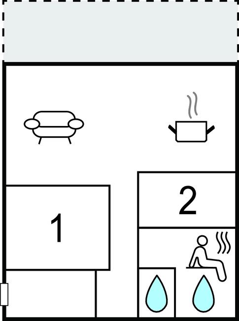 Opholdsstue/køkken - 1 Soveplads. (Sofa, madras eller lignende).