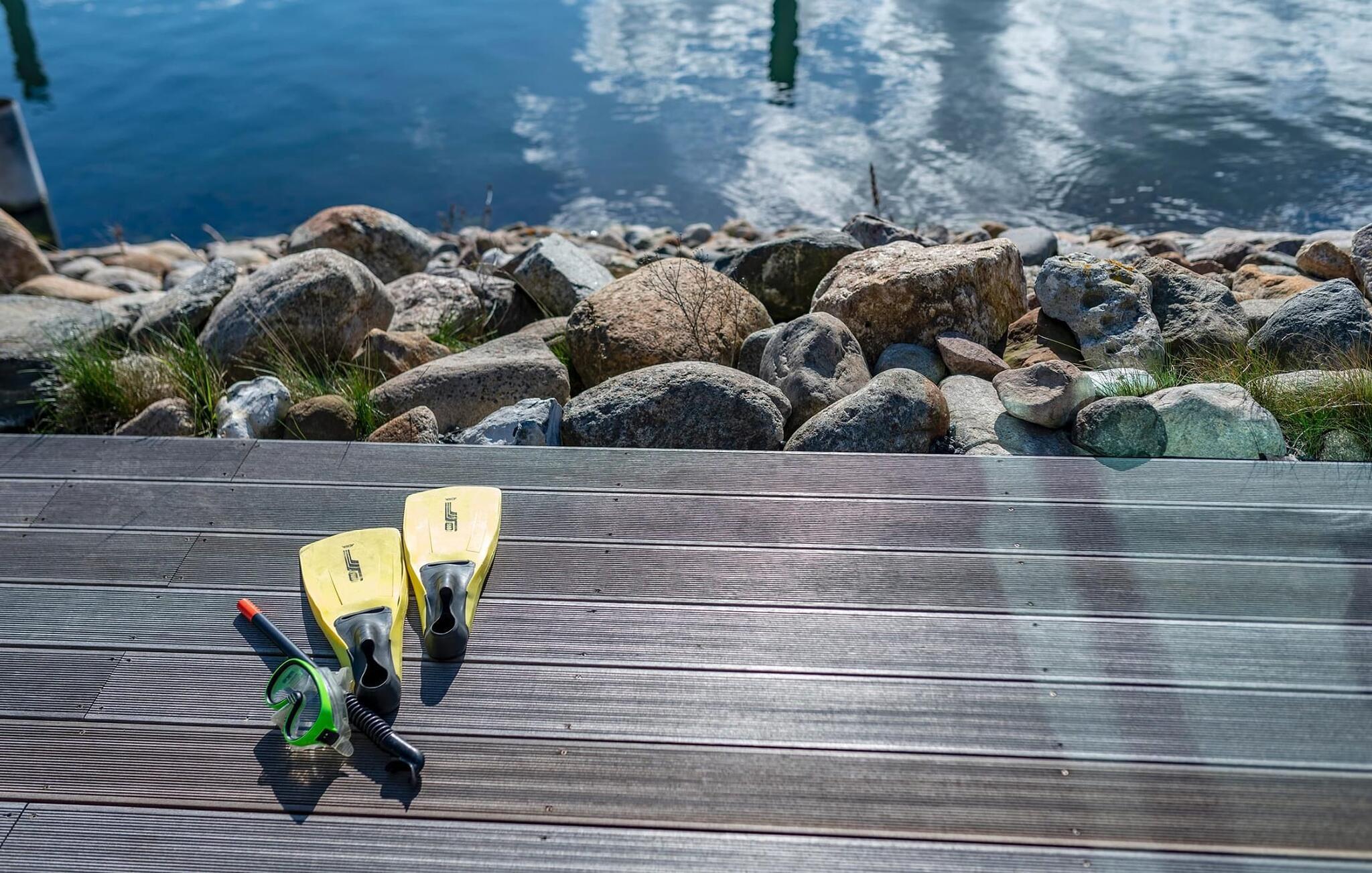 Den sydvendte orientering af den rummelige terrasse direkte på lystbådehavnen lover en vidunderlig udsigt til solen hele dagen lang, mens pejsen og gulvvarmen i hele lejligheden sørger for behagelig komfort i hver sæson. Den store finske sauna tilbyder wellness-øjeblikke efter en lang gåtur på stranden.