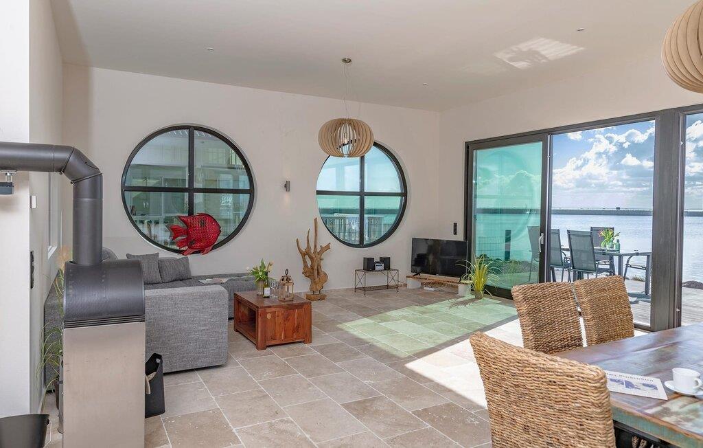 Vores yndlingssted: Slap af i sofaen, indtag det smukke rum og se på vandet.