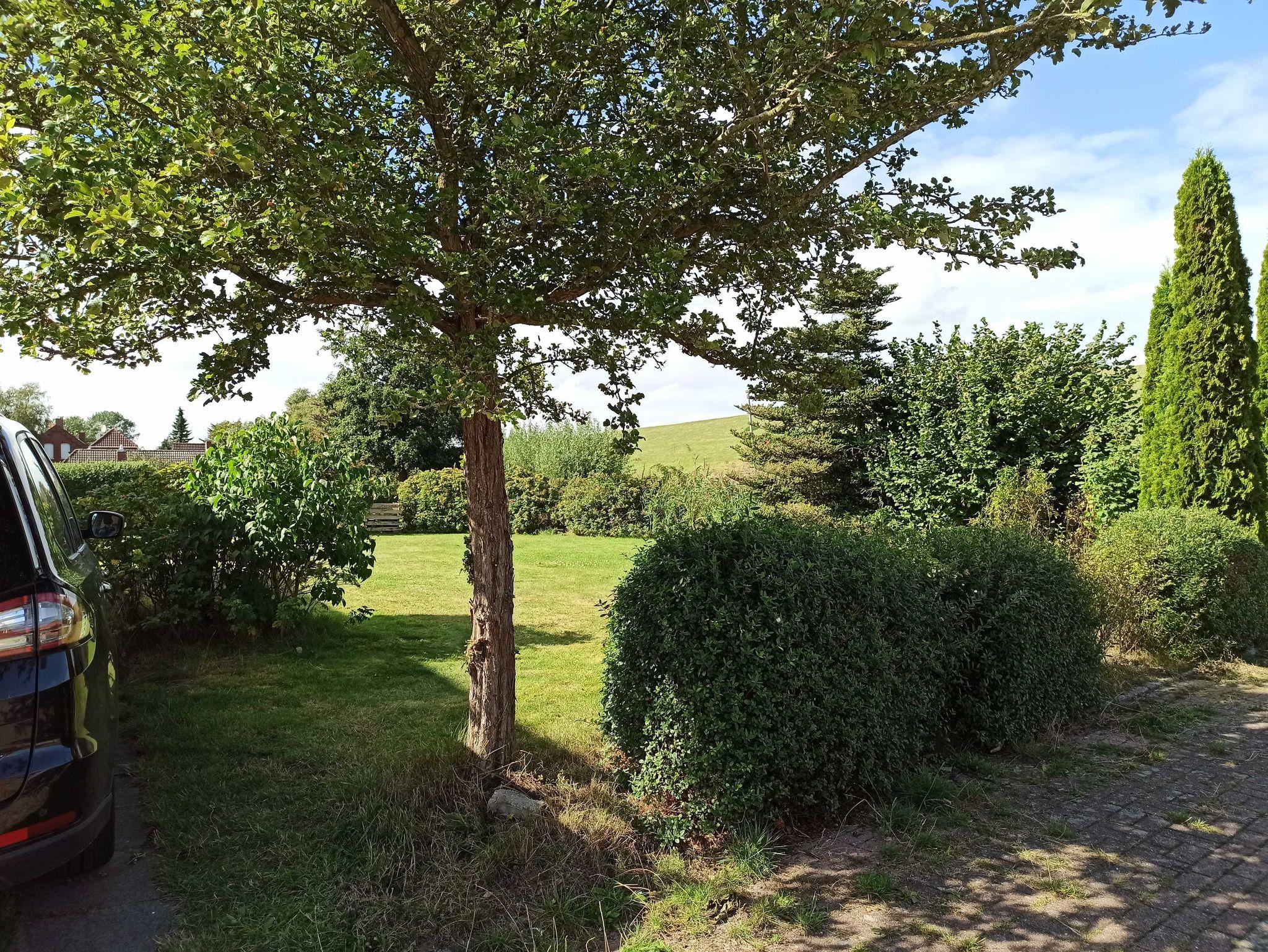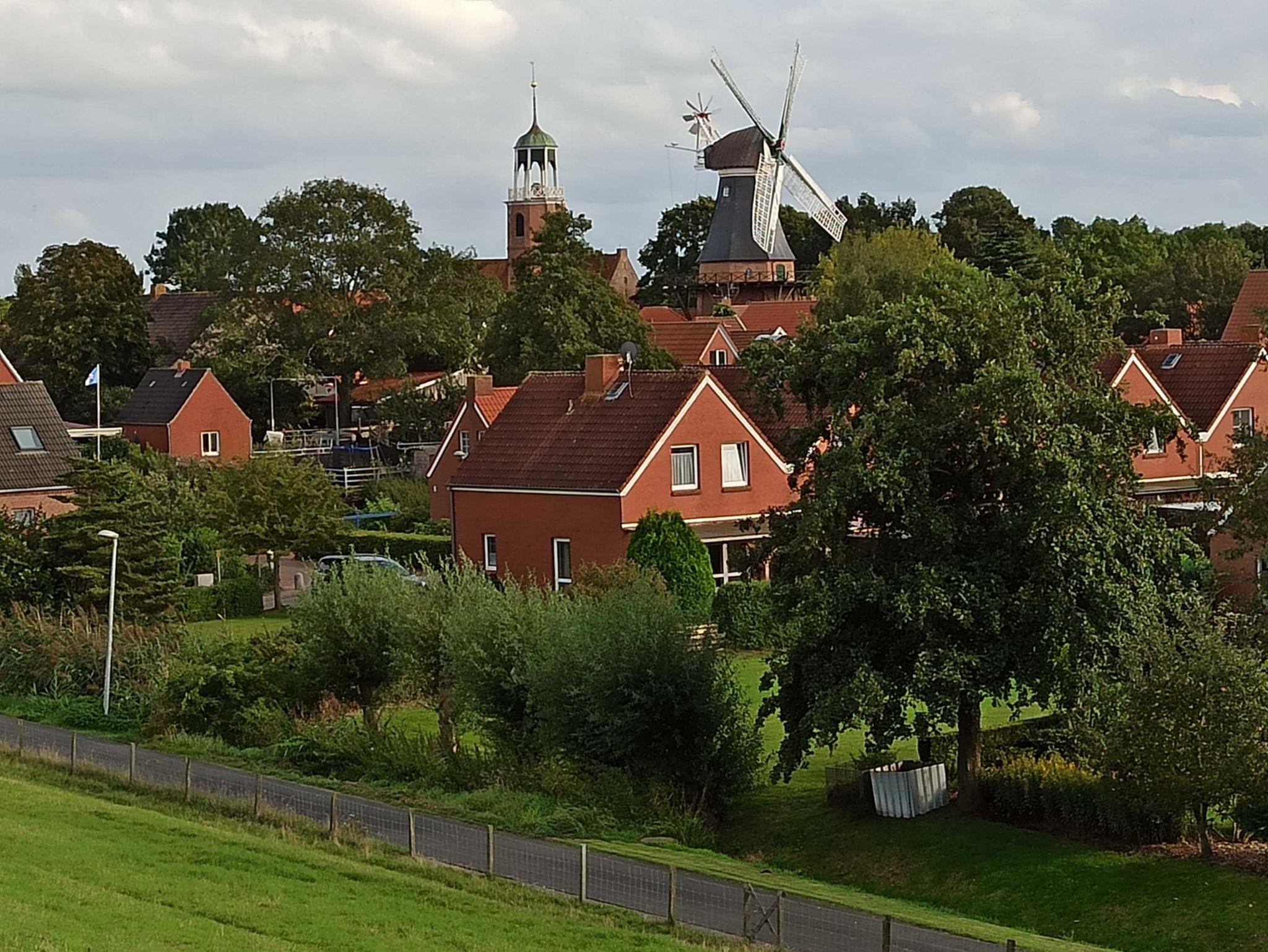 Ferienhaus „Friesenrose“, Reihenendhaus mit großem Grundstück (700qm), in absolut ruhiger Lage am Ortsrand von Ditzum und doch nur wenige Schritte vom Hafen, der Mühle und der Kirche entfernt. Unverstellter Blick auf den Deich. Zum Ferienhaus gehören eine überdachte Terrasse und ein schön angelegter Garten mit großer Rasenfläche ausschließlich zur eigenen Nutzung, ideal für Kinder jeden Alters zum Spielen, Toben, Kicken. WLAN steht kostenlos zur Verfügung. Hunde willkommen. Eigner Parkplatz direkt am Haus.