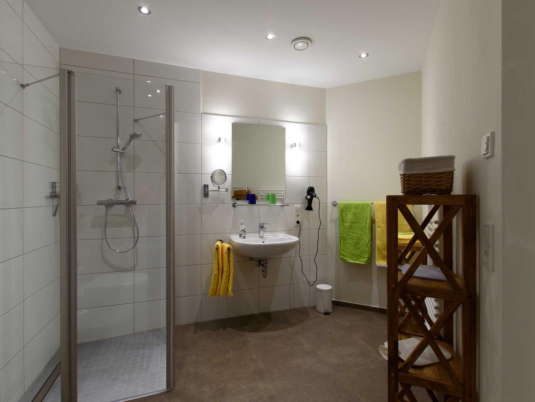 Bad mit beleuchtetem Kosmetikspiegel