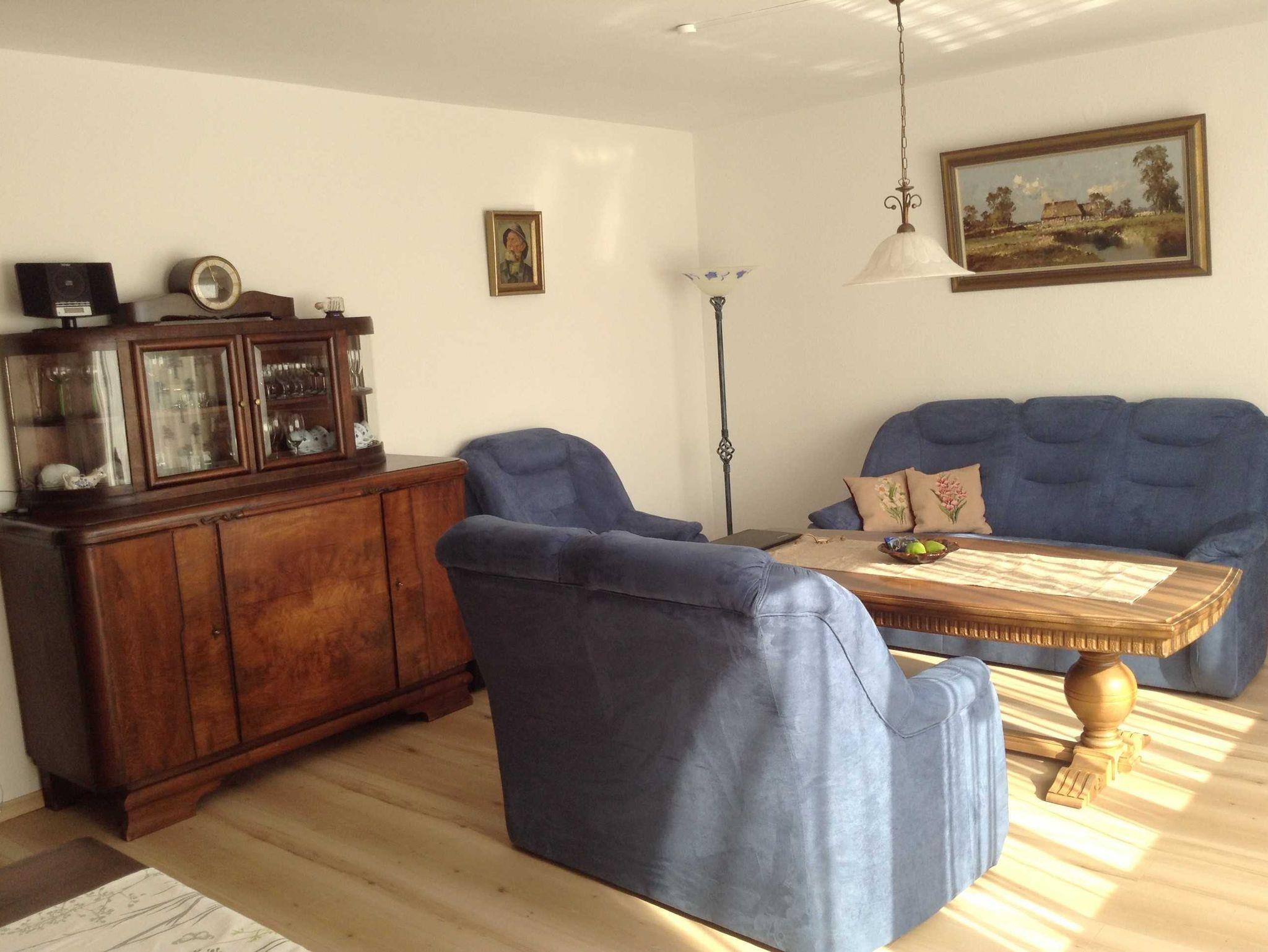 Ferienwohnung Rosenwinkel: 75 qm im Erdgeschoss für bis zu 4 Personen, Wohnzimmer, 2 Schlafzimmer mit Doppelbetten, 1 Zustellbett und 1 Kinderbett, Küche mit Mikrowelle u. Spülmaschine, Dusche/ WC, Diele, Terrasse. W-LAN kostenlos. Bettwäsche und Handtücher sind inklusive. Saunanutzung gegen Gebühr. Hund auf Anfrage möglich.
