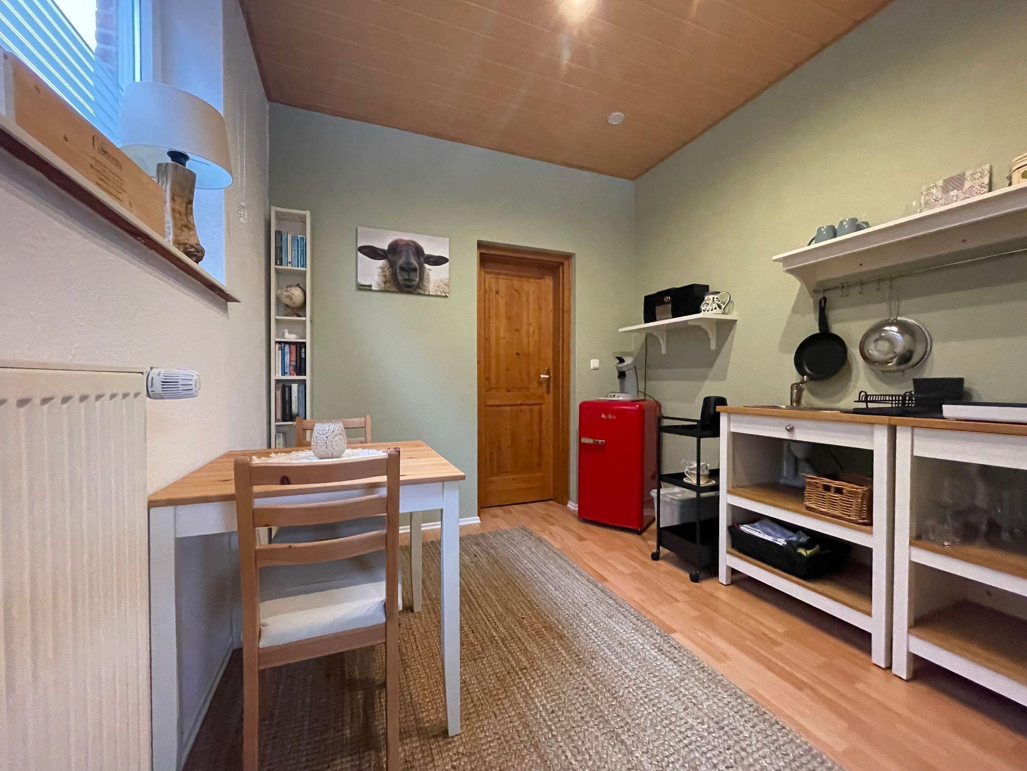 Liebevoll eingerichtetes Apartment (27 qm) für 2 Personen mit einem Wohn-Schlafbereich und Duschbad. Die kleine Küche bietet Ihnen neben einem Zwei-Platten-Herd einen Kühlschrank, eine Kaffeemaschine, einen Wasserkocher und Geschirr für zwei Personen. Bettwäsche und Handtücher werden gestellt.