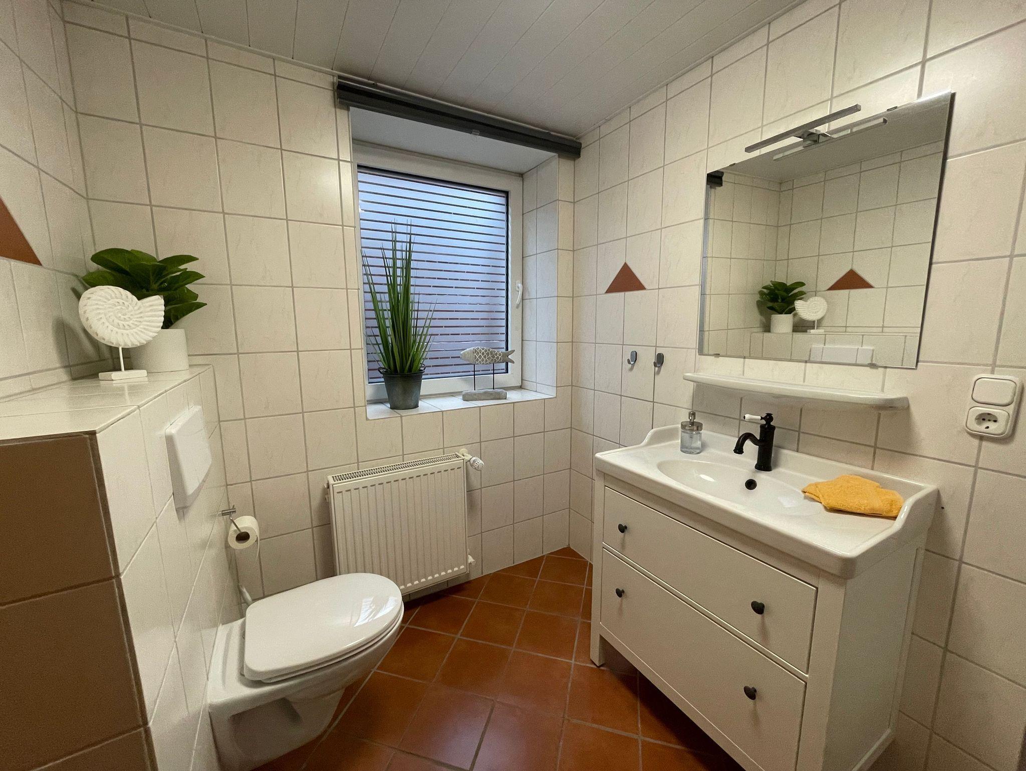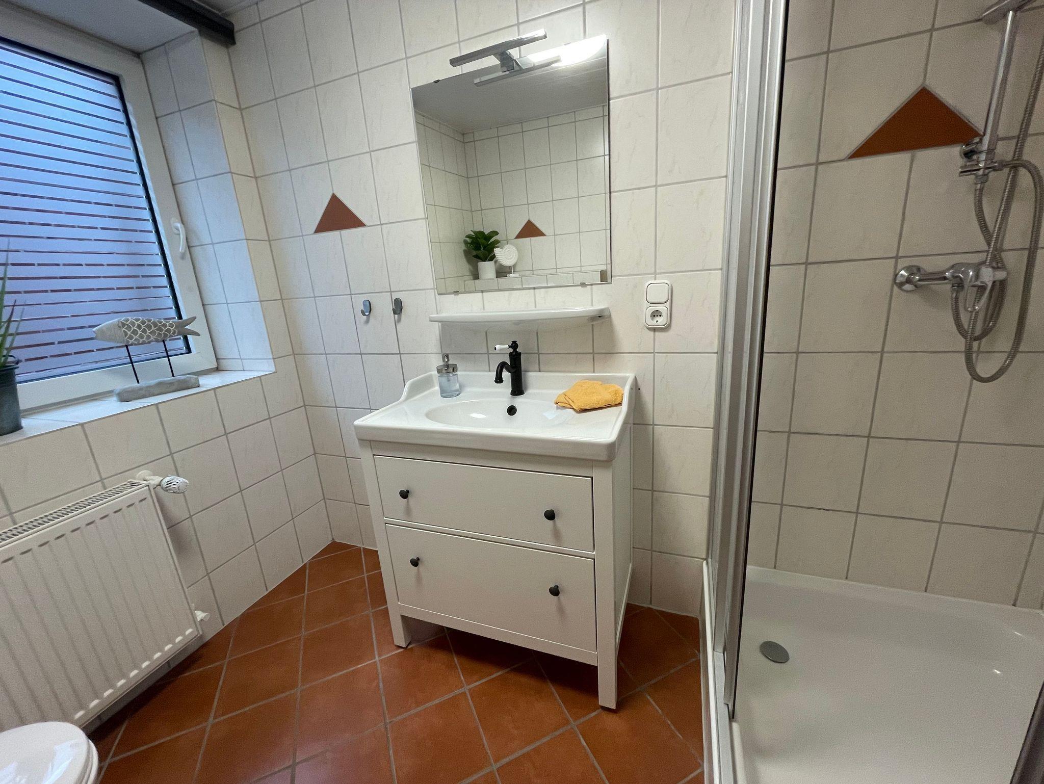 Das separate Bad ist mit Dusche und WC ausgestattet.
