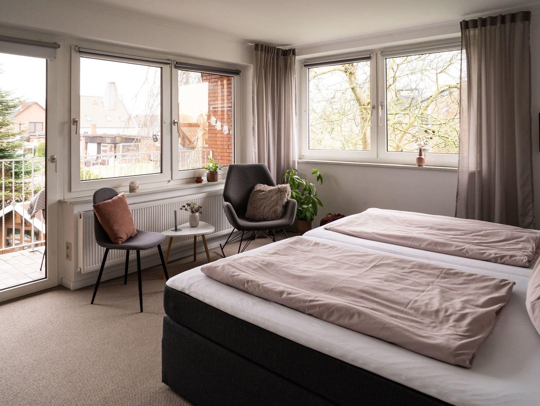 Jemgum ist immer eine Reise wert und in unserer schönen Ferienwohnung in ruhiger Straßenlage können Sie Ihren Urlaub in vollen Zügen genießen. Unsere helle und freundliche Ferienwohnung hat einen seperaten Eingang und Platz für bis zu 4 Personen. 2 Schlafzimmer mit bequemen Boxspringbetten und Flachbild TV laden zum gemütlichen Entspannen ein. Das erste Schlafzimmer hat einen Balkon mit tollem Ausblick, dort stehen getrennte Betten (1,20x2,00m je Bett), das zweite Schlafzimmer hat ein Doppelbett (1,60x2,00m), ein sehr schönes Dachfenster mit Insektenschutz und -verdunklungsrollo und ebenso ein TV.