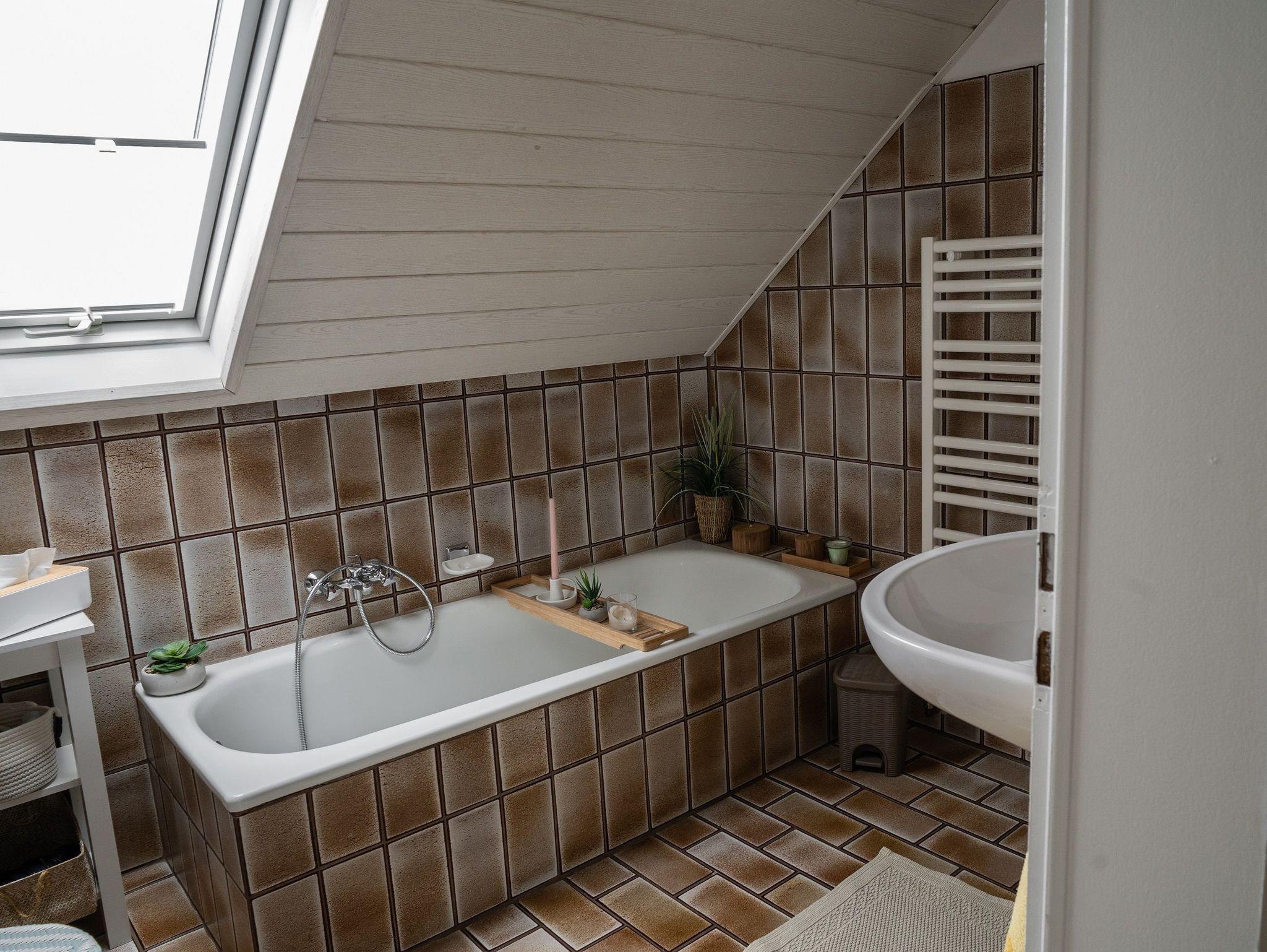 Das Badezimmer bietet Ihnen Dusche und Wanne. WC extra. Bettwäsche und Handtücher sind inkl. Unterstellmöglichkeit für Fahrräder ist vorhanden.