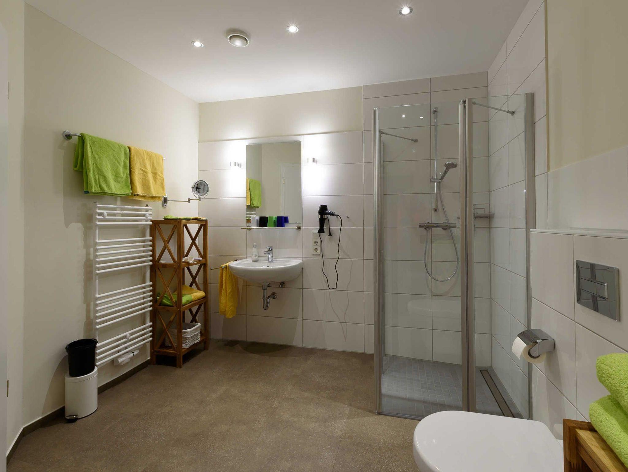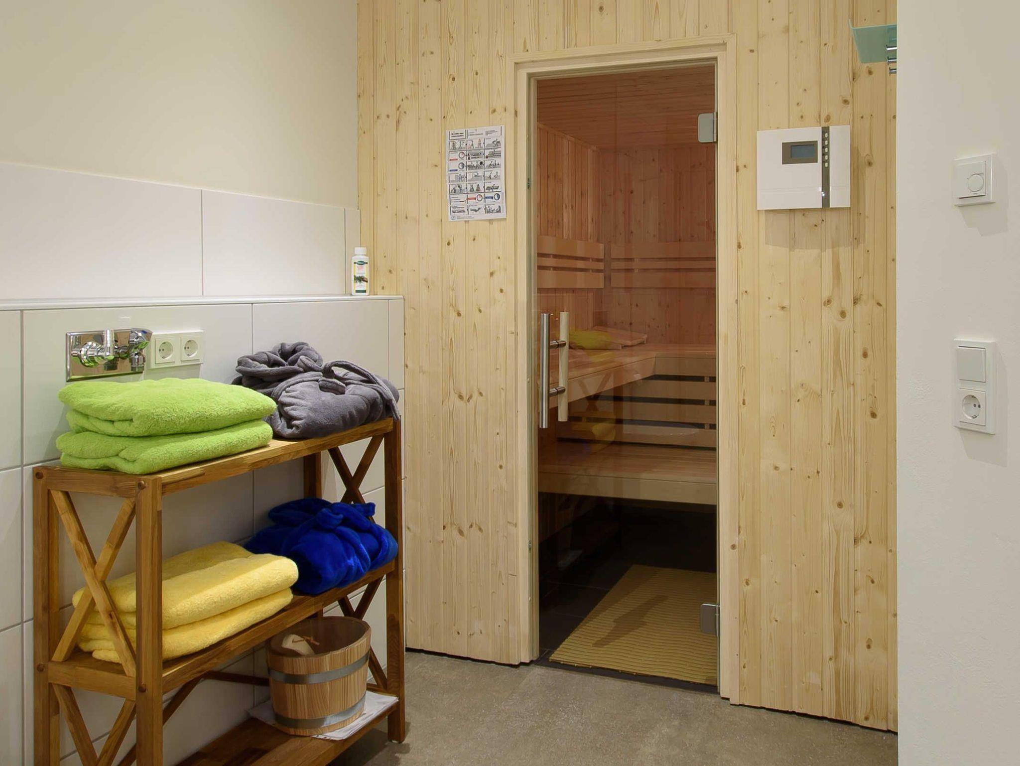 Im Bad befindet sich eine private Sauna