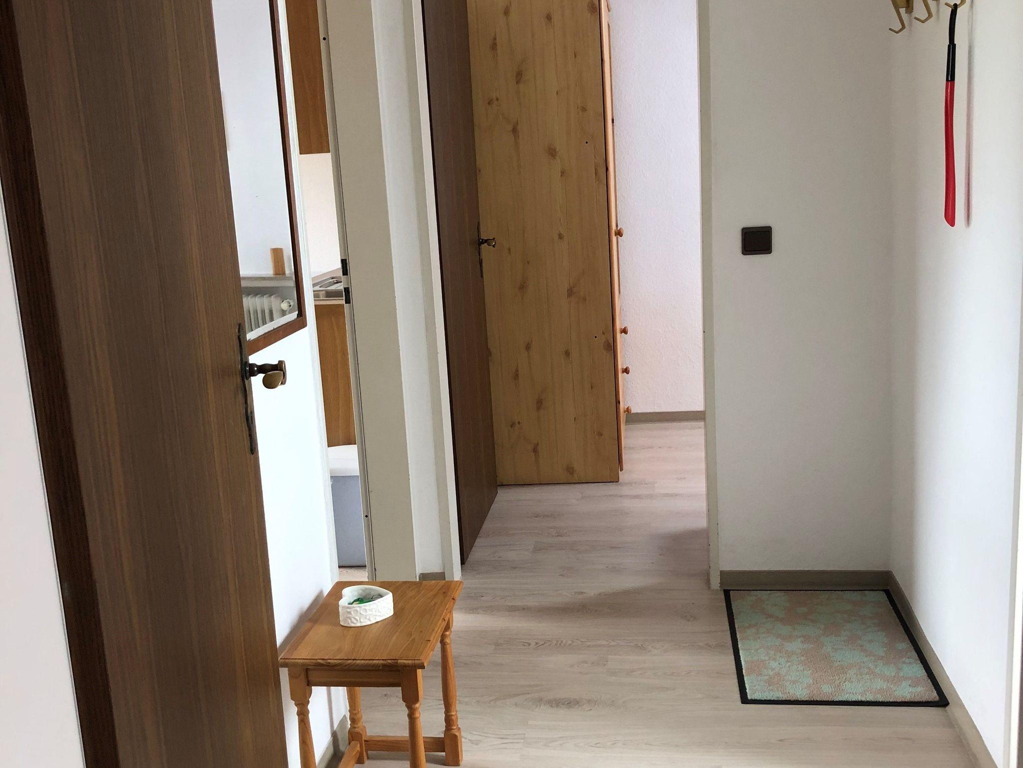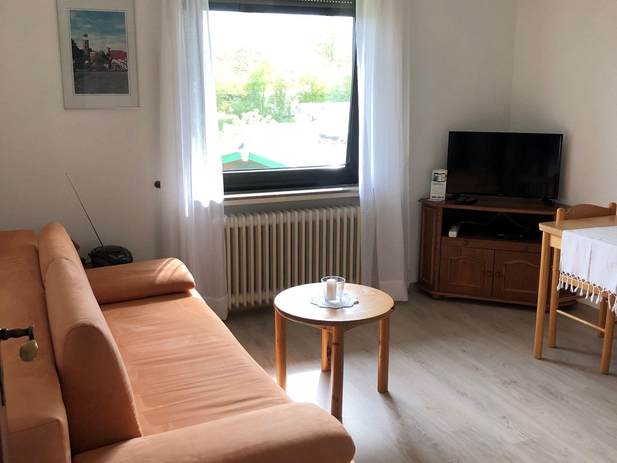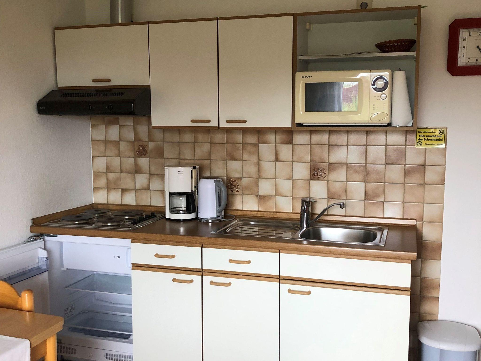 unsere kleinste Wohnung mit Küchenzeile und Wohnraum kombiniert. Gemütliches Schlafzimmer mit großem franz. Bett. Badezimmer mit Wannenbad. Geeignet für bis zu 2 Personen. Nicht für Haustiere geeignet.
