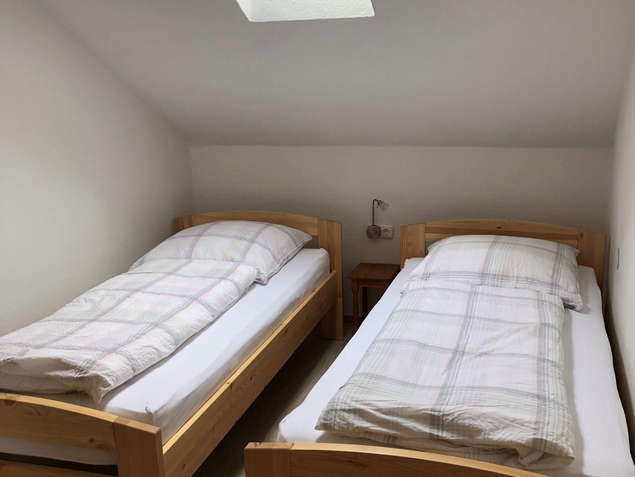 Ferienwohnung Ossistube: 35 qm große Obergeschosswohnung für 2 Personen. Wohnzimmer mit Küchenzeile und Mikrowelle, 1 Schlafzimmer, Bad mit Duschbadewanne und WC. Saunanutzung gegen Gebühr. Keine Haustiere.