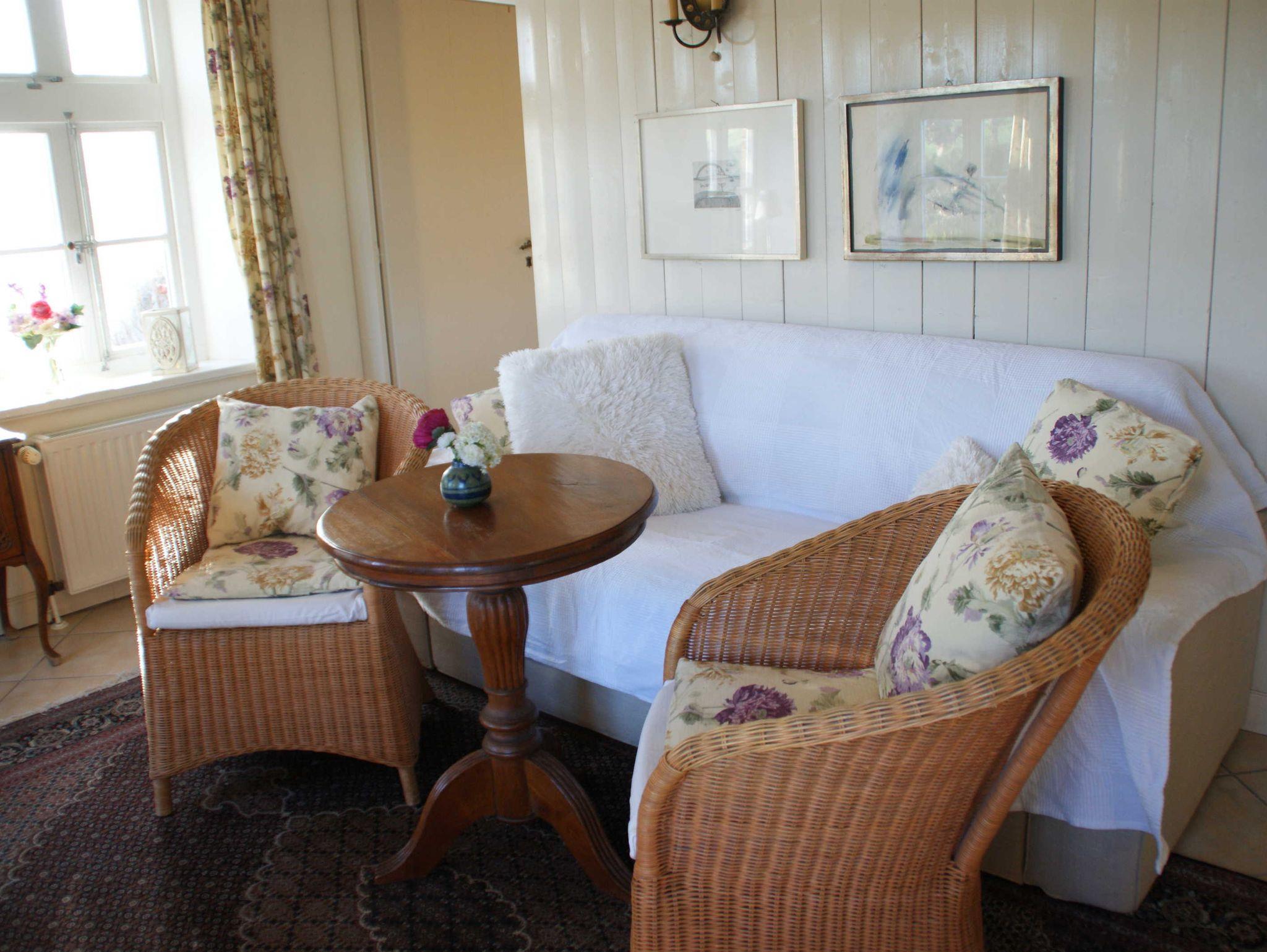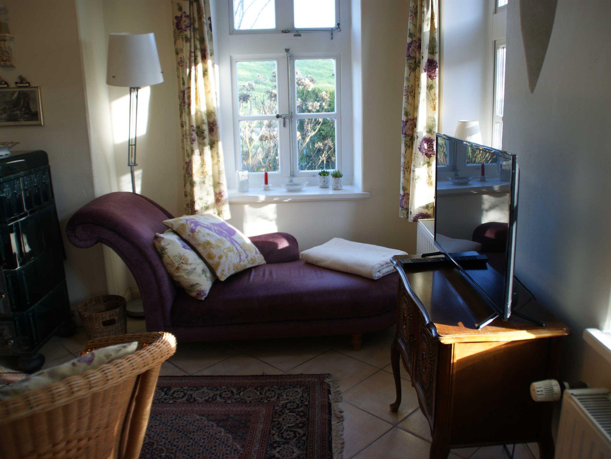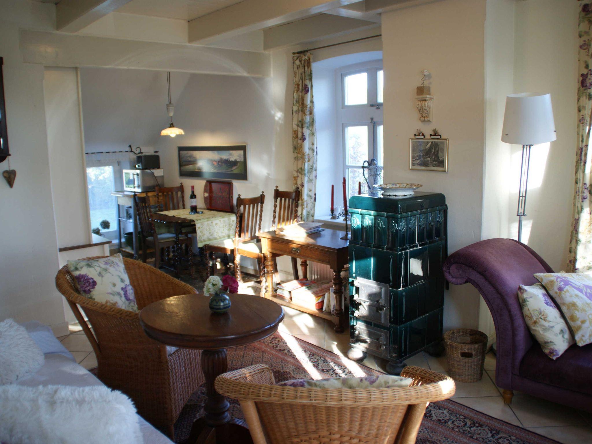 Die komfortabel und teilweise mit alten Möbeln ausgestattete Ferienwohnung (ca. 40 qm) hat einen eigenen Eingang und ist ideal für zwei Personen. Zur Not kann das Sofa (1,60 m x 1,90 m) im Wohnbereich ausgezogen werden und bietet dann eine zusätzliche Schlafgelegenheit.