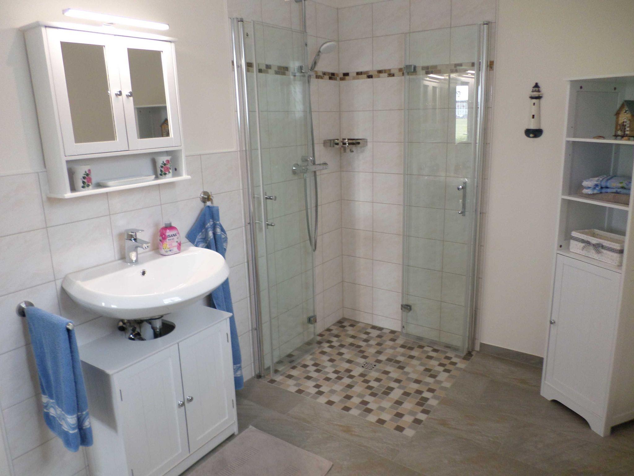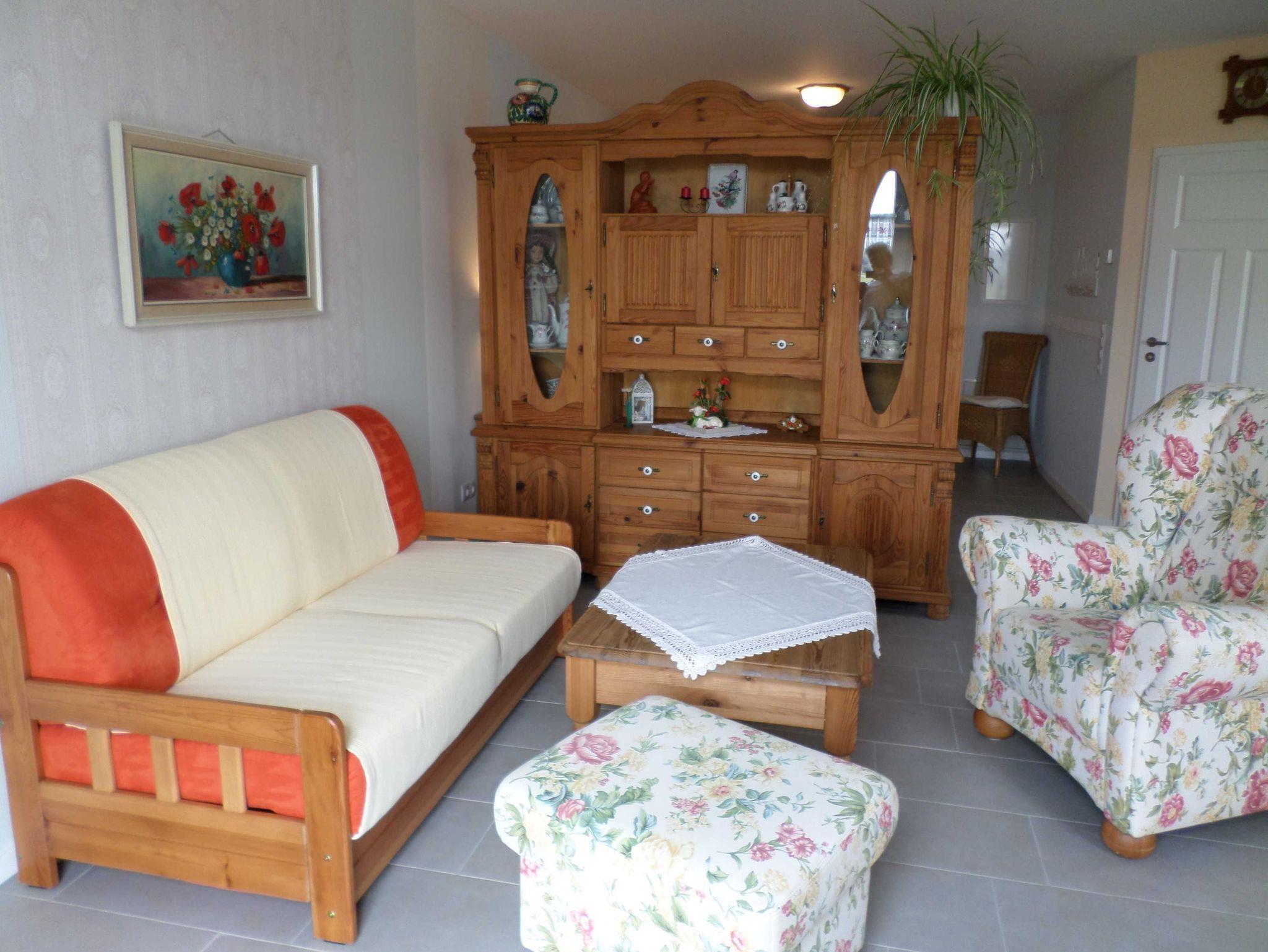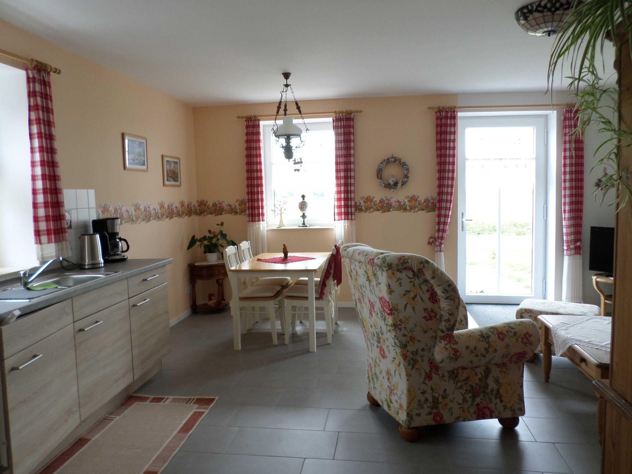 Schönes Apartment (1) für 2 Personen in gemütlich, eingerichtetem Landhausstil. Das Apartment verfügt über einen offenen Grundriss. Der Wohnraum besteht aus einer komplett ausgestatteten Küchenzeile mit Essecke und Flachbild-TV (SAT). Der Schlafraum ist abgetrennt mit Doppelbett. Das separate Bad hat eine ebenerdige Dusche und ein WC. Das Apartment ist für Allergiker geeignet, barrierefrei und mit Fußbodenheizung ausgestattet.