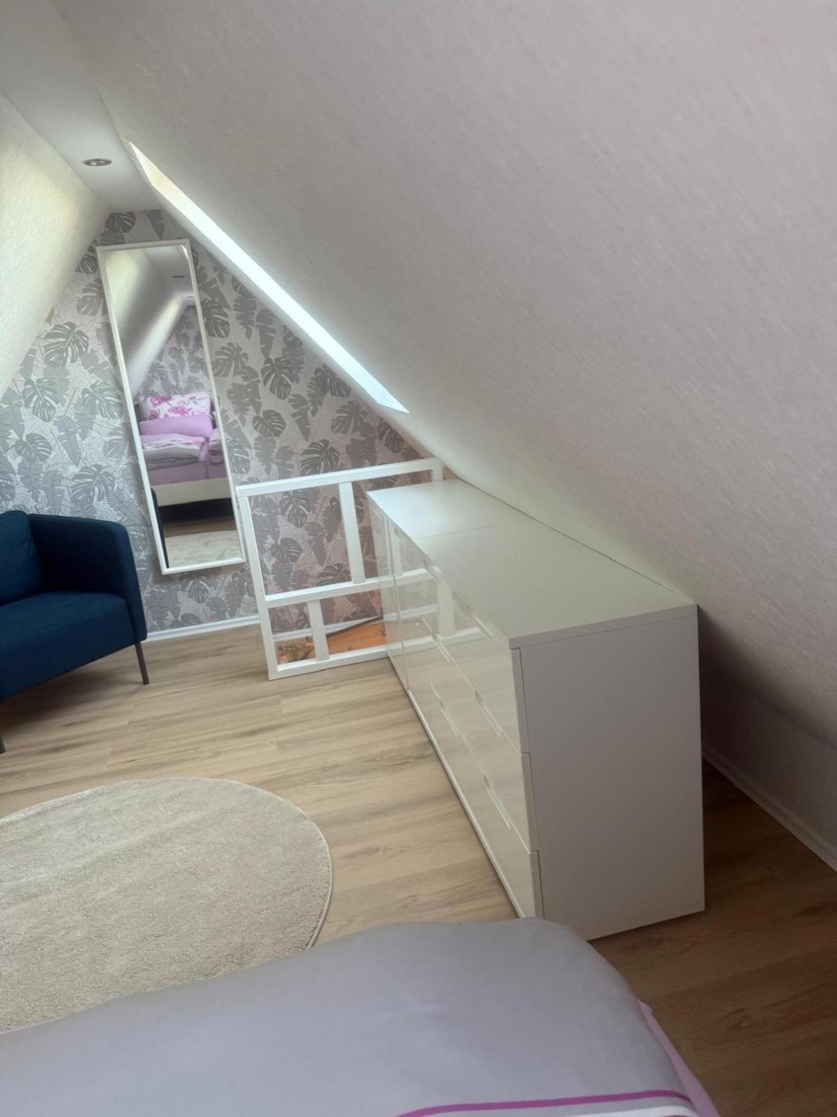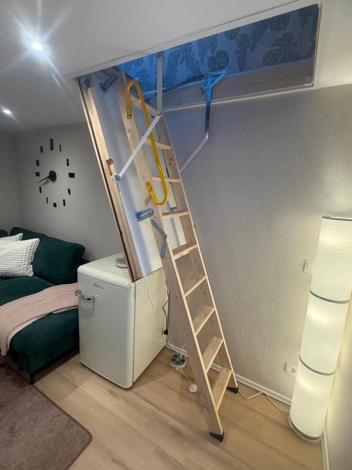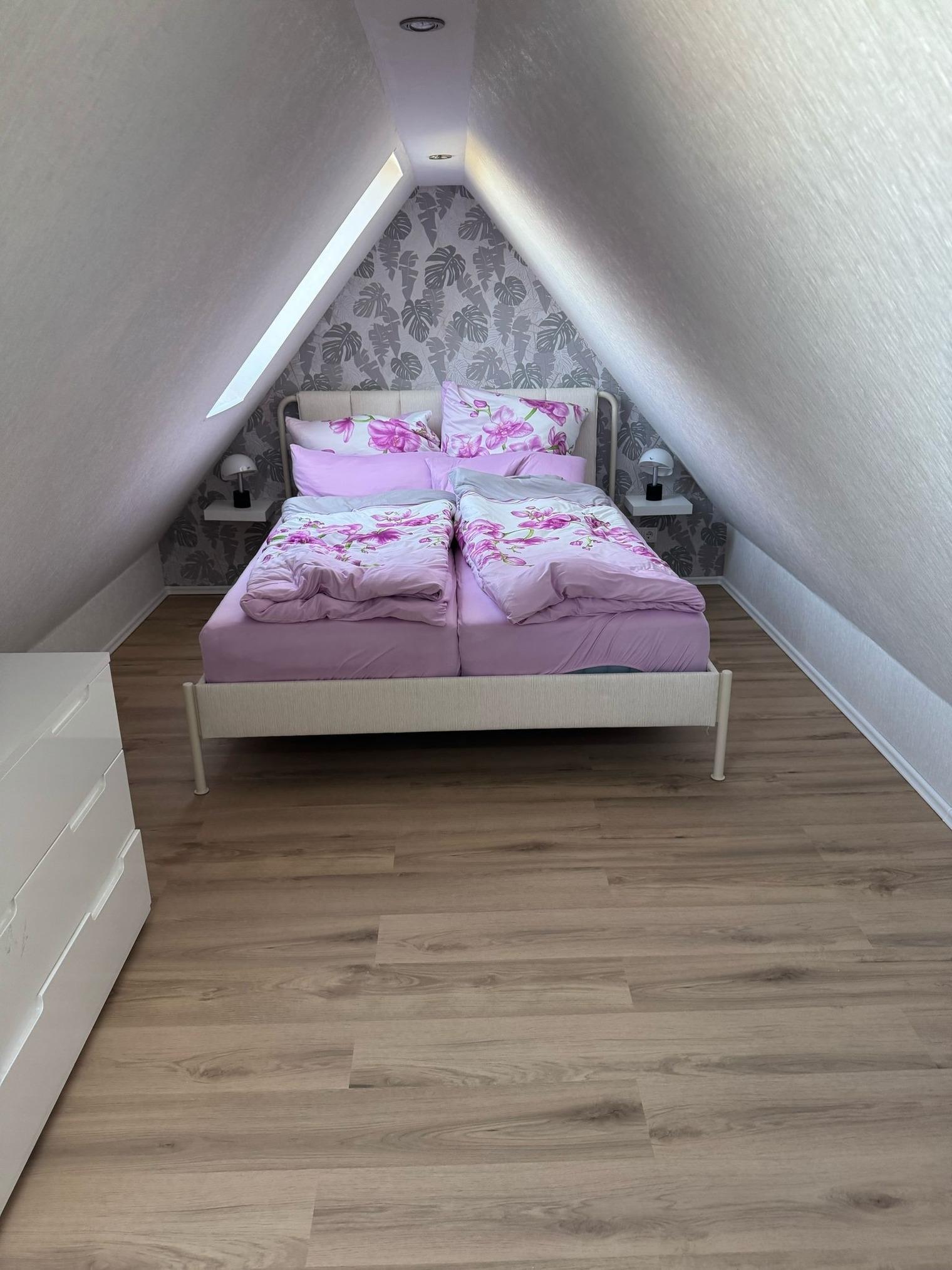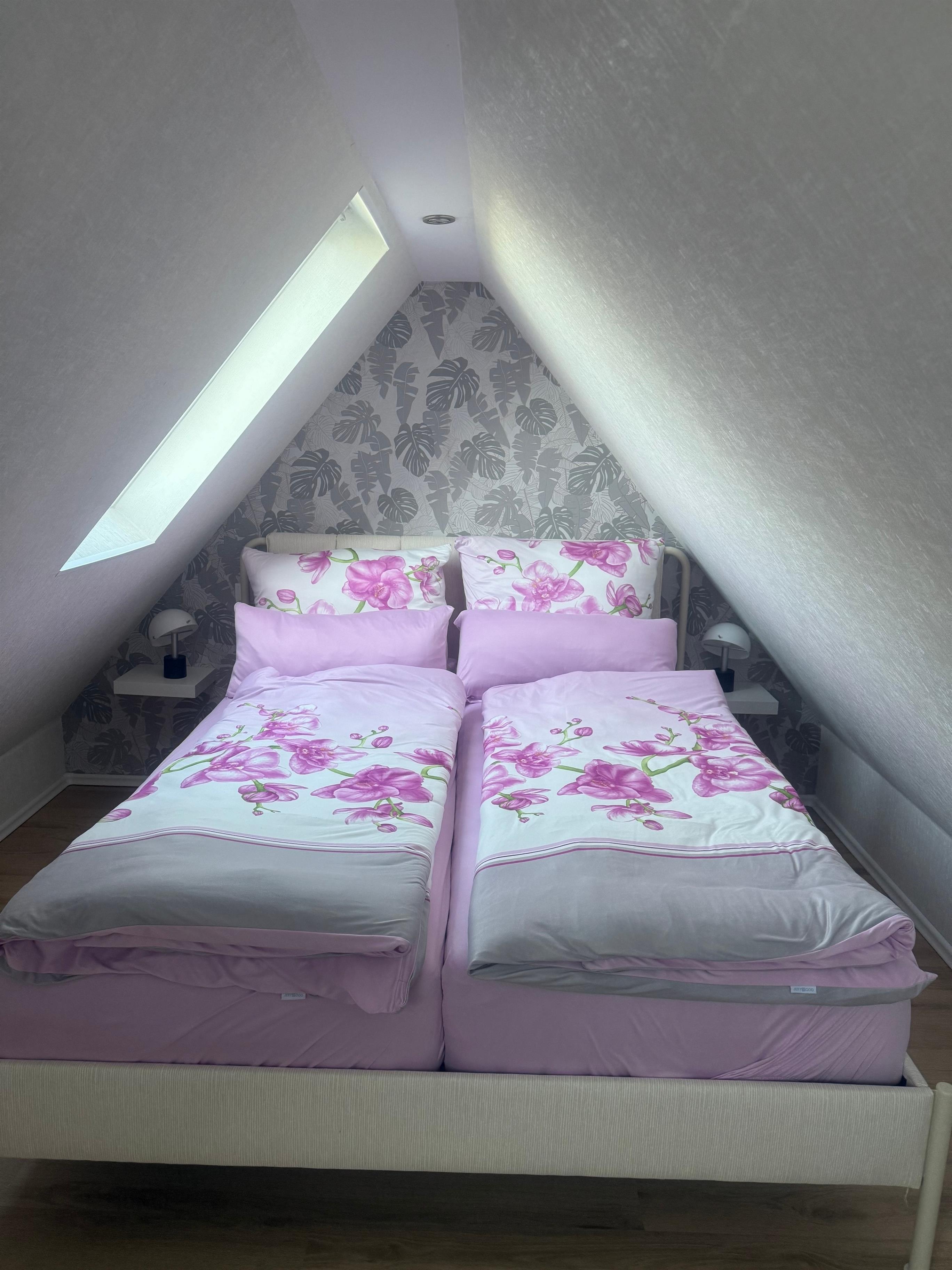 - Schlafzimmer mit einem 160?cm breiten Doppelbett (offenes Fußteil ideal auch für größere Gäste), über eine Falltreppe zu erreichen