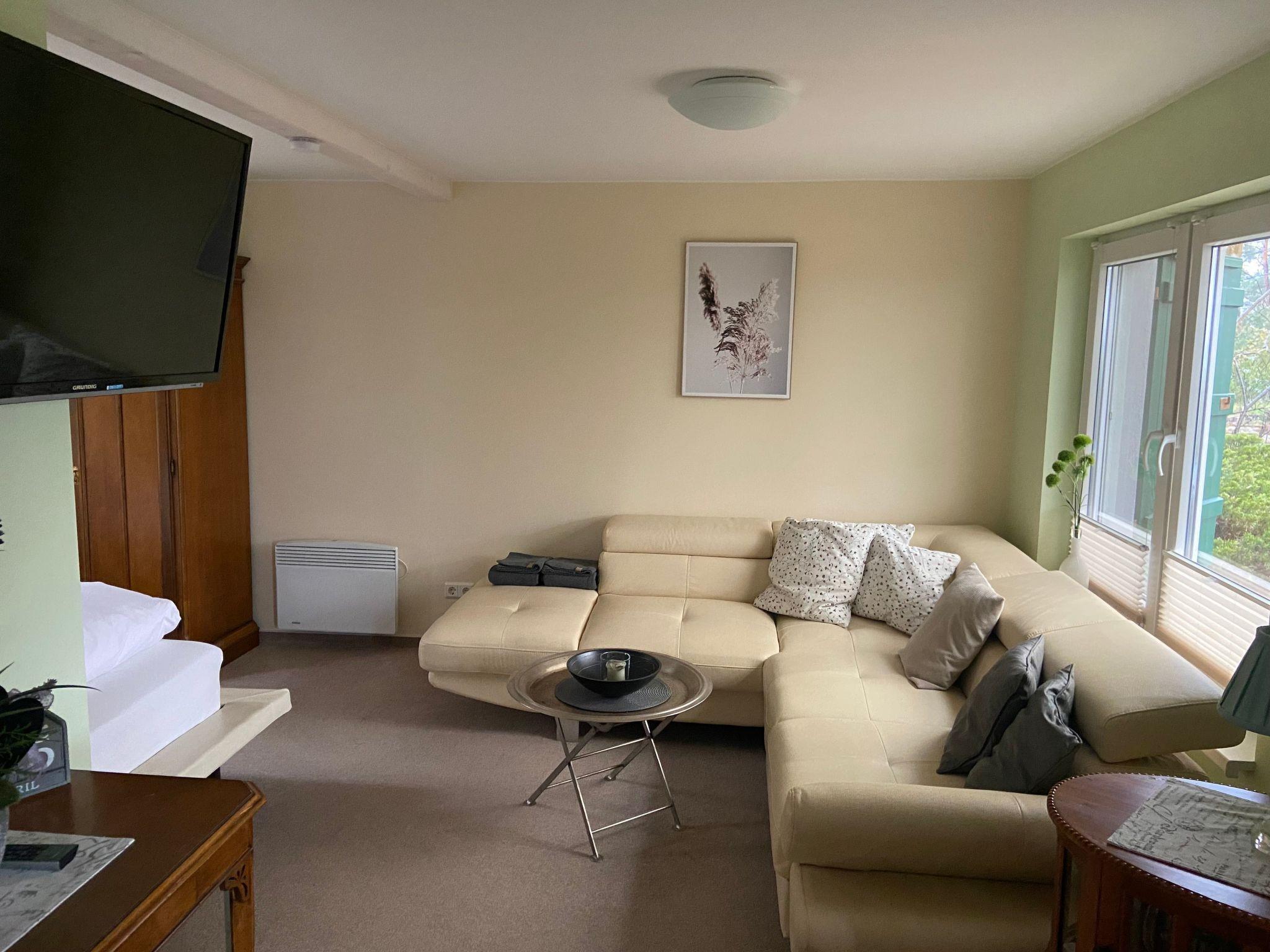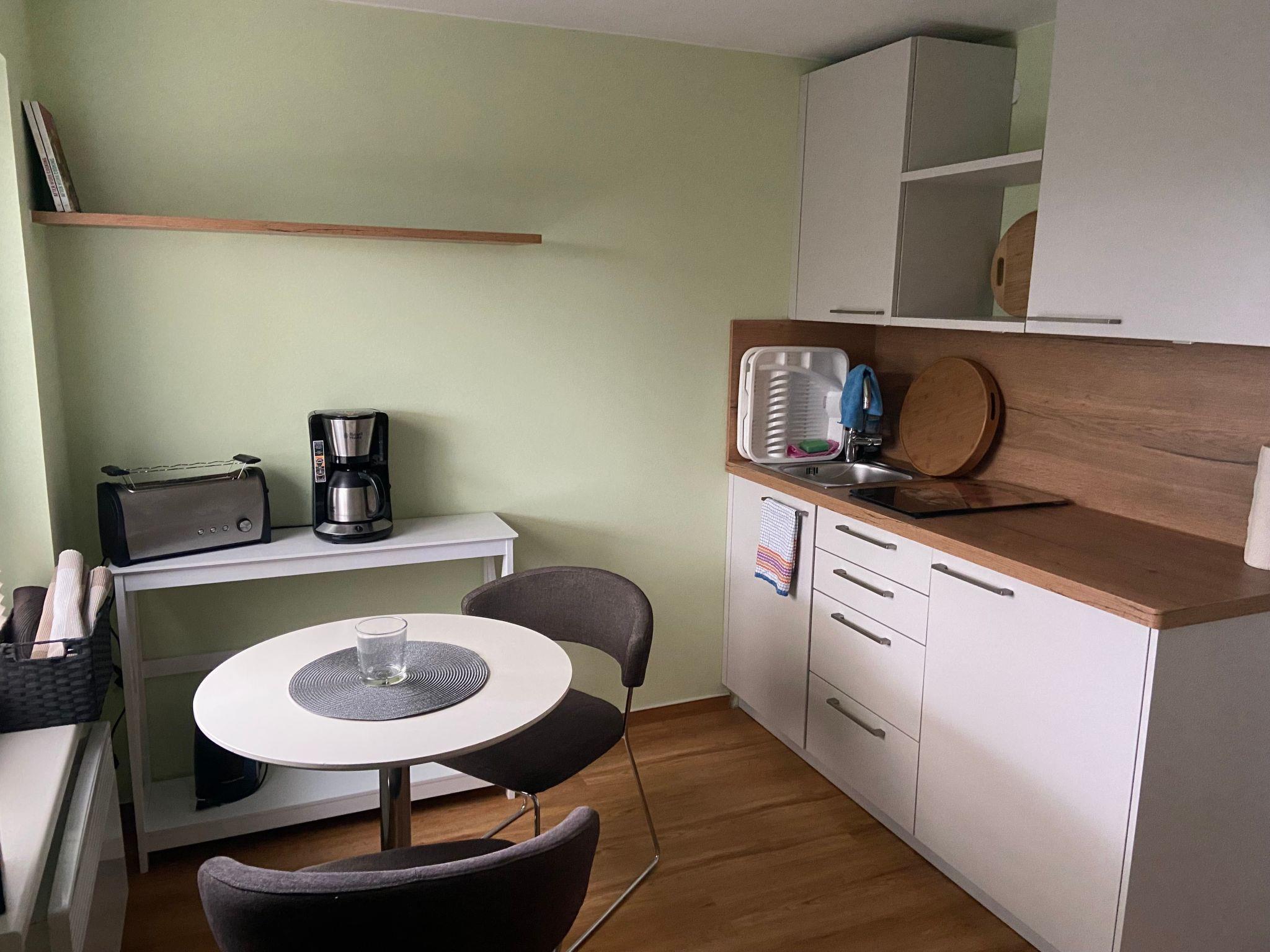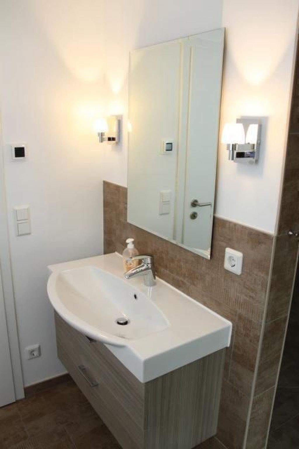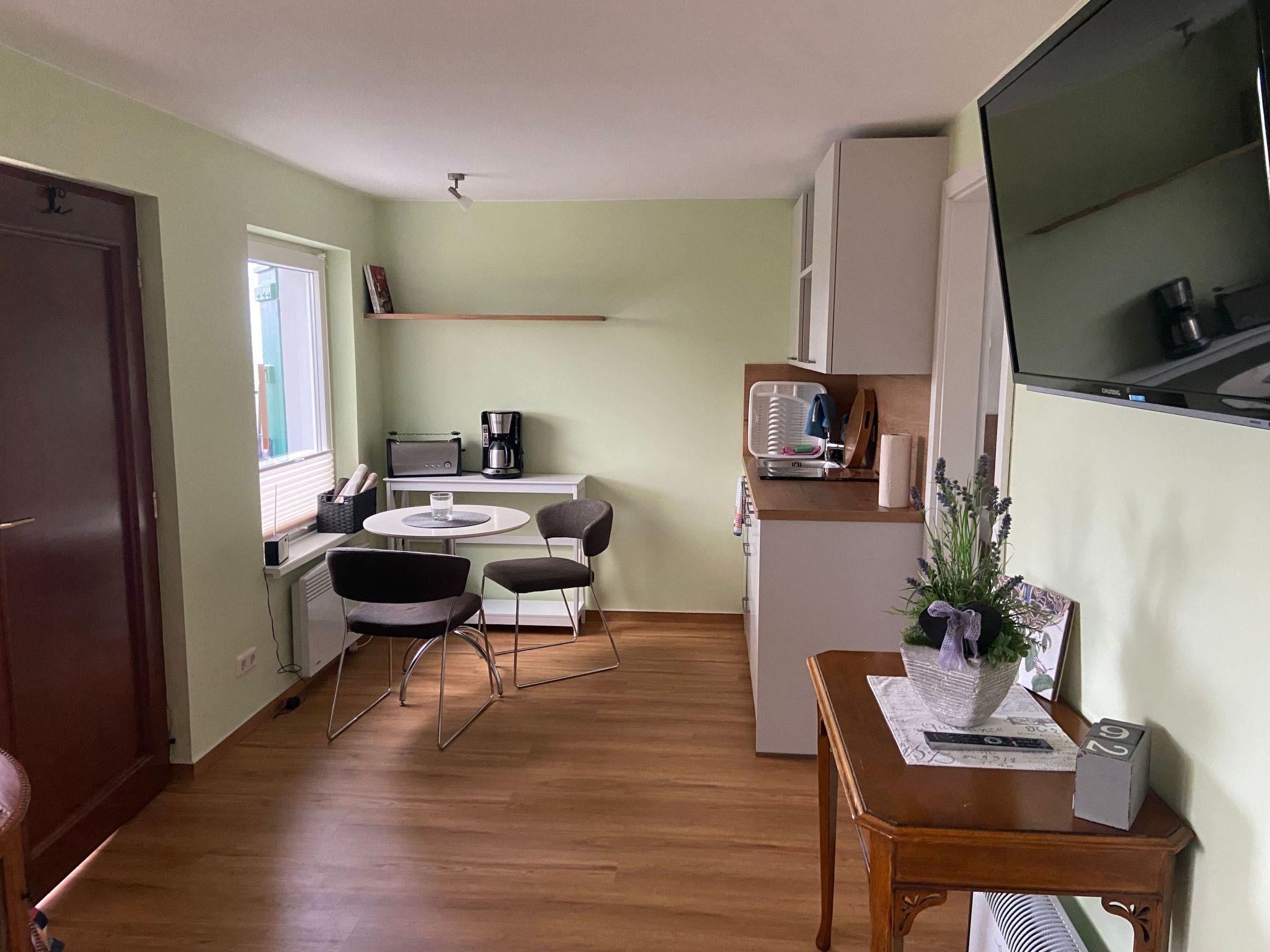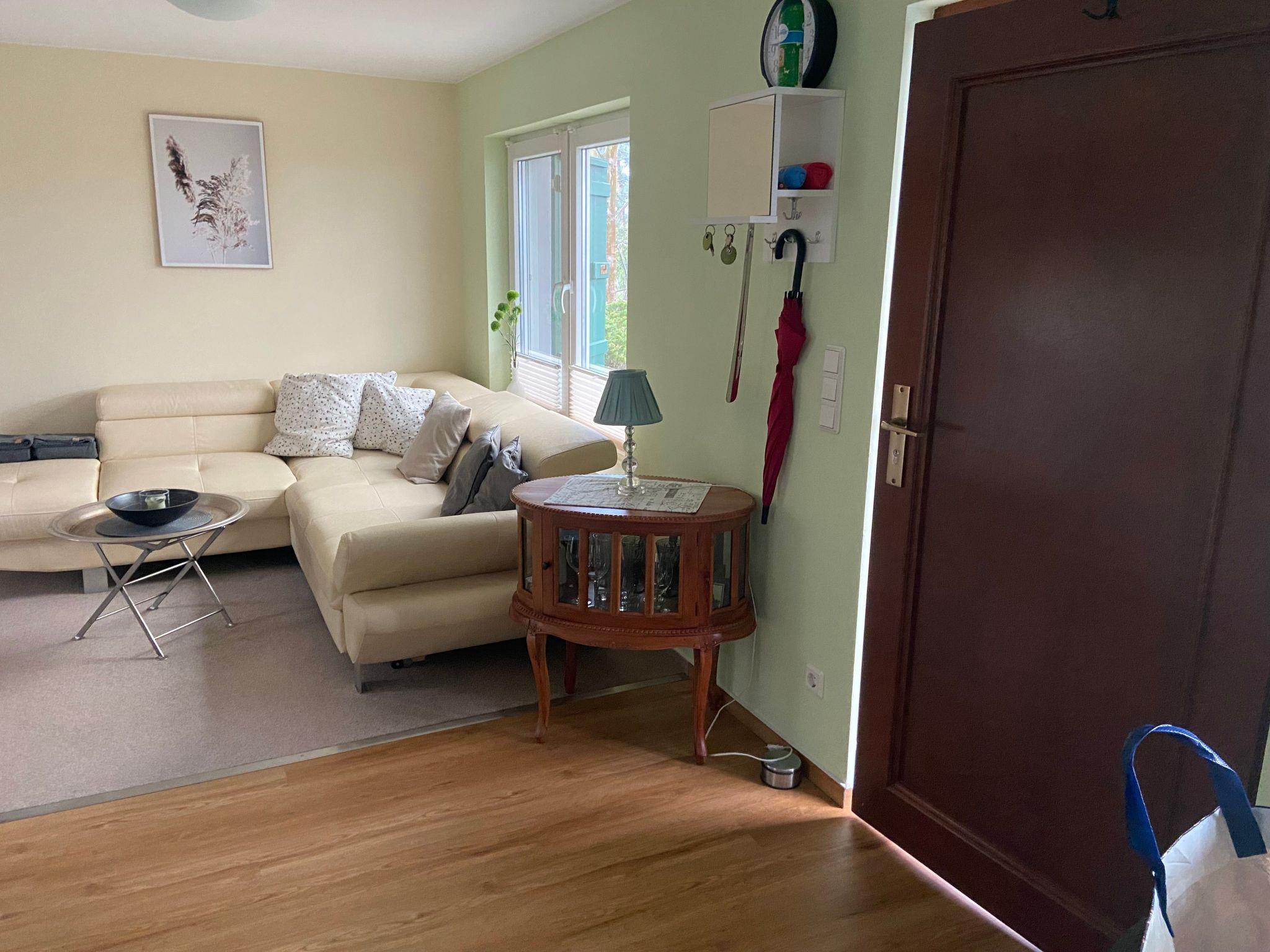 The house from 1970 was completely gutted in 2014 and remodelled to the latest standards. The approximately 35 m² living area offers an antique but newly restored linen cupboard, a large corner couch (with sleeping function), a wall-mounted satellite flat screen TV and a small fitted kitchen with fridge with freezer compartment, small electric cooker, toaster, coffee machine and kettle. There is also a small breakfast table with chairs. In addition, the double bed (1.80 m x 2.00 m) with Vi-Spring mattress, Tempur topper and down duvets is located in the large, electrically heated living room. The separate bathroom has a walk-in shower and WC. A washing machine, a tumble dryer and a hoover are available in the cellar. This makes the holiday home ideal for two adults and a small child. An extra bed can be added on request for a maximum total occupancy of 4 people.