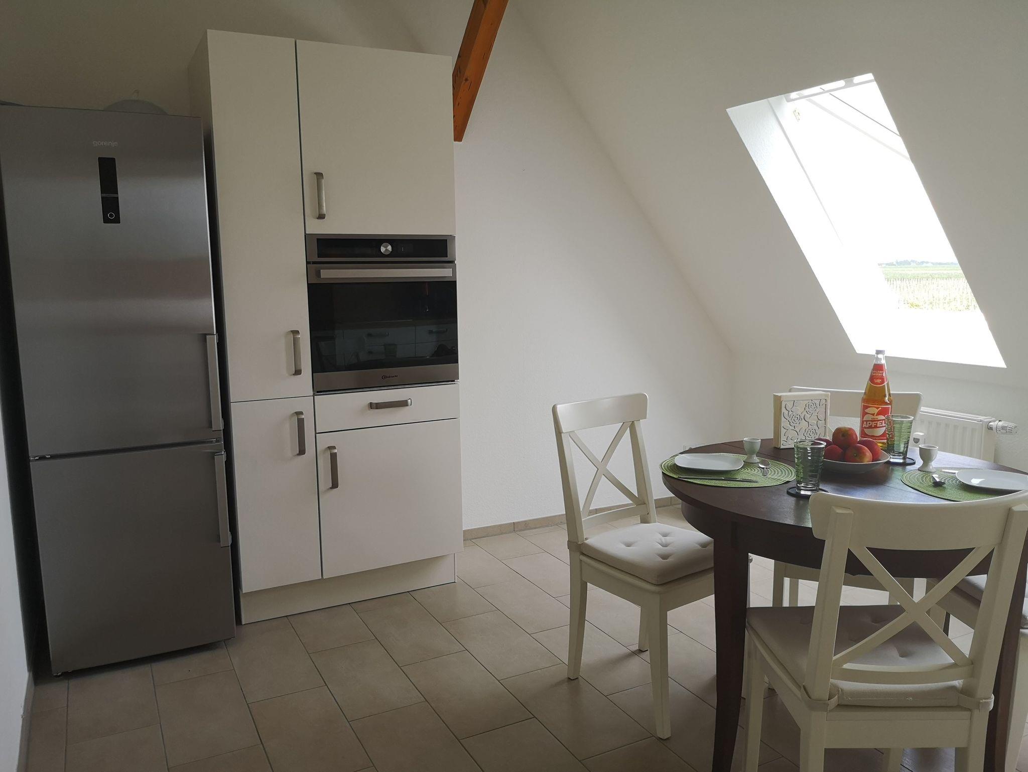 Über einen separaten Eingang betreten Sie die im ersten Stock liegende, liebevoll eingerichtete Ferienwohnung. Auf 70qm finden Sie eine schöne Küche, ein modernes Badezimmer sowie einen Schlaf- und Wohnbereich. Zu allen Seiten der Wohnung können Sie die idyllische Aussicht auf die Obstplantagen genießen.