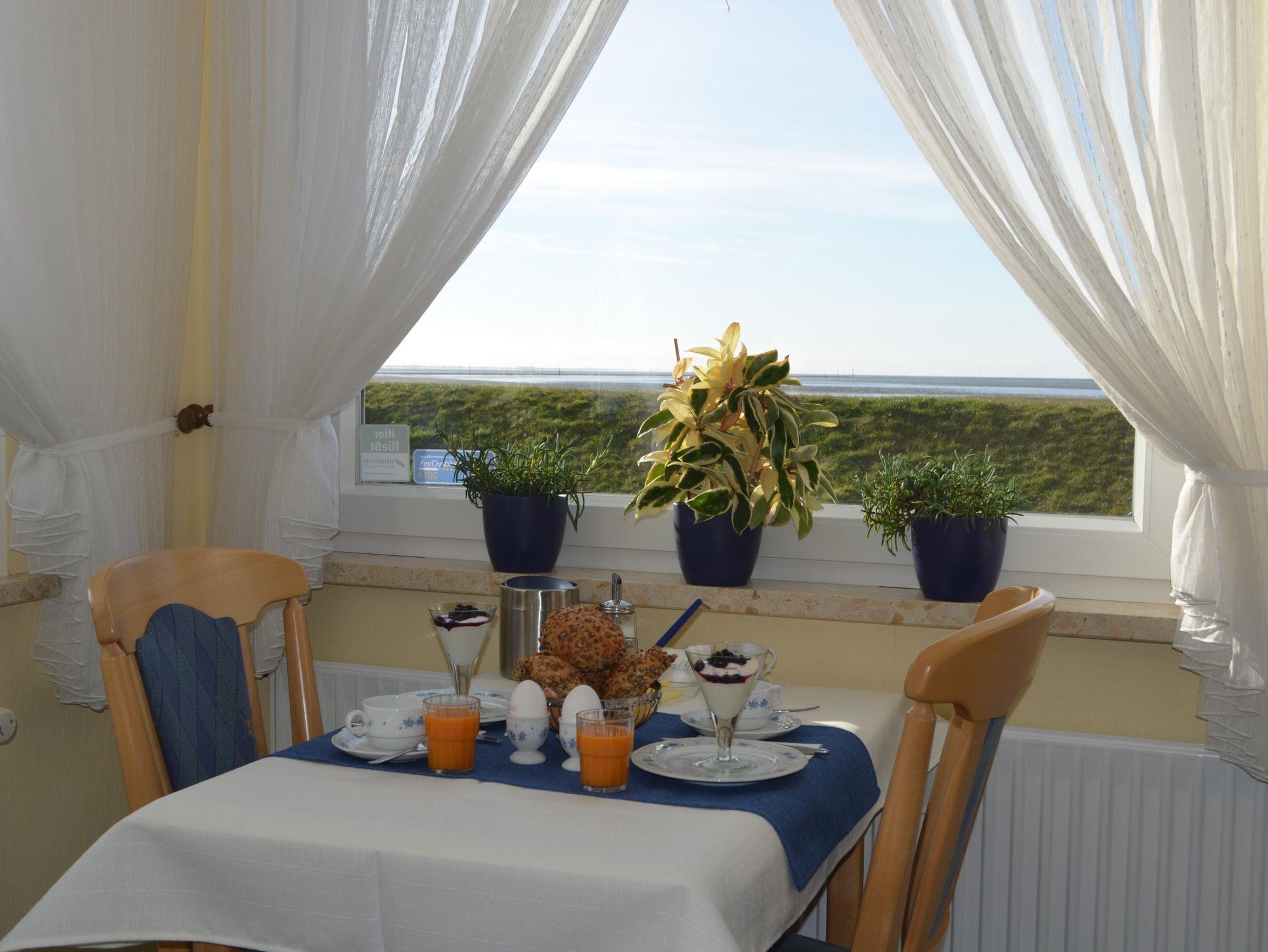 Wir bieten Ihnen drei gemütliche Ferienwohnungen – auf Wunsch auch mit Frühstücksbuffet – sowie Doppel-, Einzel- und Dreibettzimmer inklusive Frühstück. Vom Frühstücks- und Aufenthaltsraum genießen Sie einen herrlichen Blick auf das Wattenmeer. Gerne stellen wir Ihnen Rabattkarten für die Sauna zur Verfügung, sprechen Sie uns gerne an.