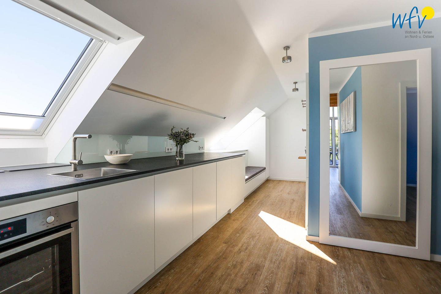 Die offene Küche zum Wohnzimmer verfügt über hochwertige Geräte wie ein Herd, ein Backofen, ein Kühlschrank mit Gefrierfach, eine Spülmaschine, eine Espressomaschine (Nespresso) / Alternativen auf Nachfrage, ein Toaster und ein Wasserkocher. Hier können Sie Ihre Kochkünste entfalten und köstliche Mahlzeiten zubereiten.