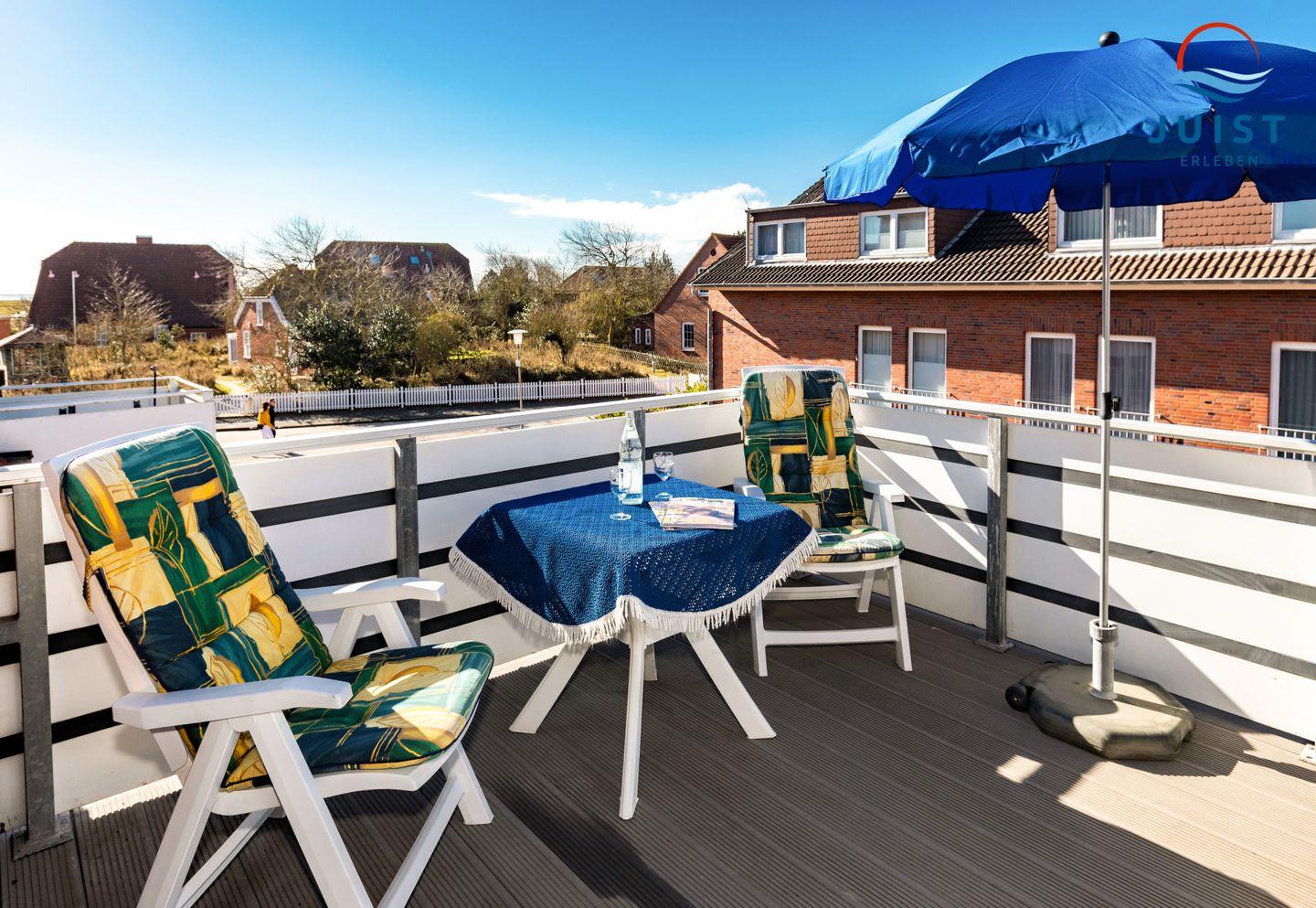 Zum ausgiebigen Relaxen ist vor allem der schöne Balkon ideal! Hier bei Sonne und frischer Nordseeluft bei einer Tasse Tee genossen werden.