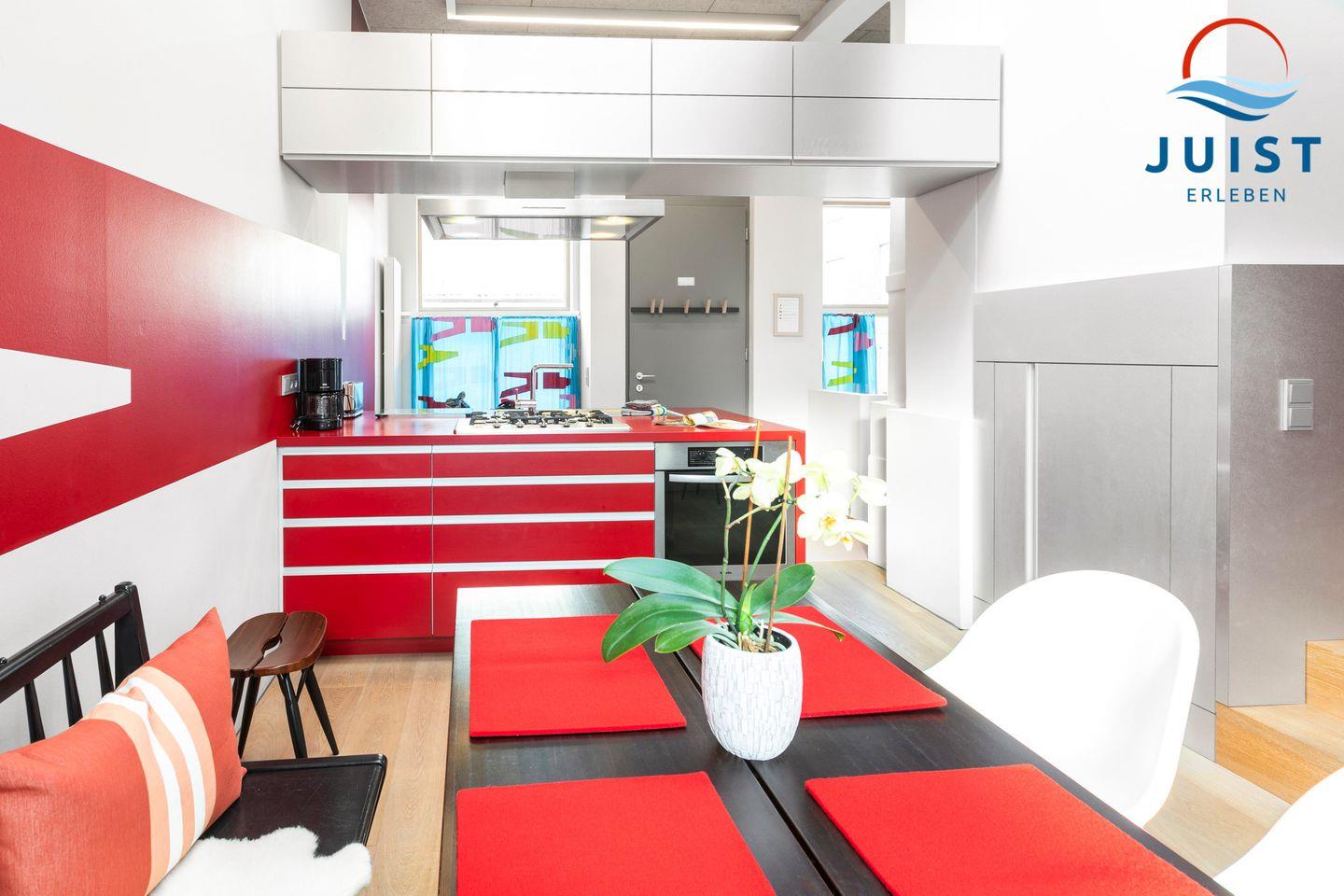Die modernen luxuriösen Installationen in der Küche verfügen u.a. über einen Gasherd sowie Backofen, Geschirrspüler, Kühlschrank, Kaffeemaschine, Toaster und Wasserkocher - so lassen sich auch im Urlaub schnell und einfach Gerichte zubereiten. Oder Sie lassen sich verwöhnen: auf Juist befinden sich viele Restaurants, die Ihnen eine köstliche Nordseeküche inklusive Meerblick servieren.