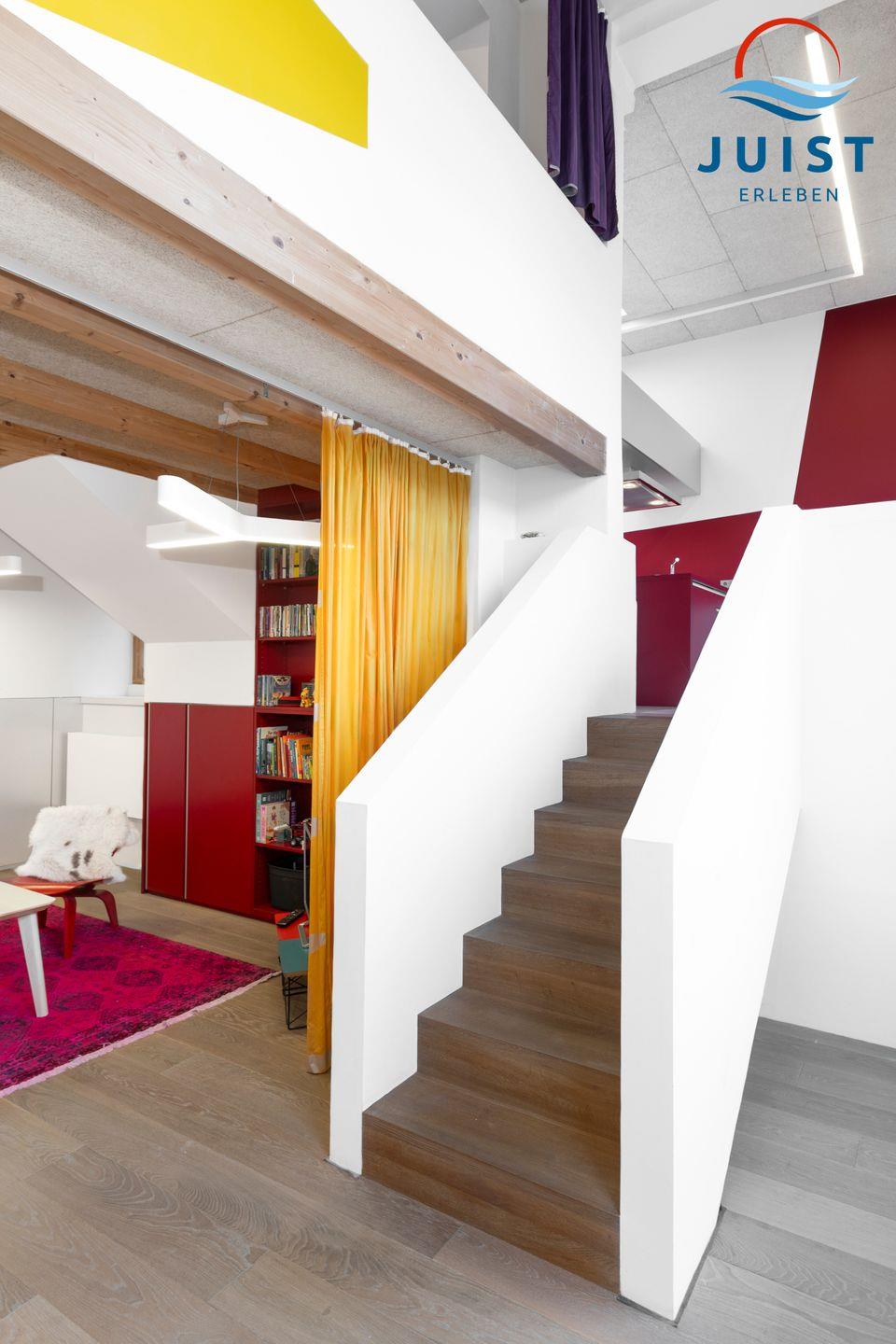 In der Wohnung Coco erwartet Sie ein hochwertiger Wohnkomfort. Auf 3 Ebenen mit hohen Decken verteilen sich Wohnbereich, Küche mit großem Esstisch sowie das Schlafzimmer auf einer Empore. Das Badezimmer mit Dusche und Badewanne befindet sich im oberen Bereich.