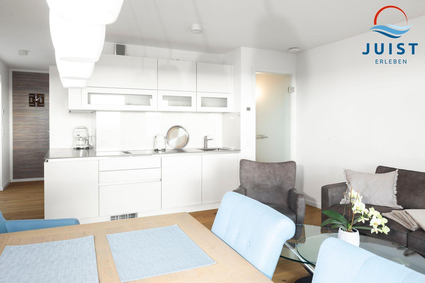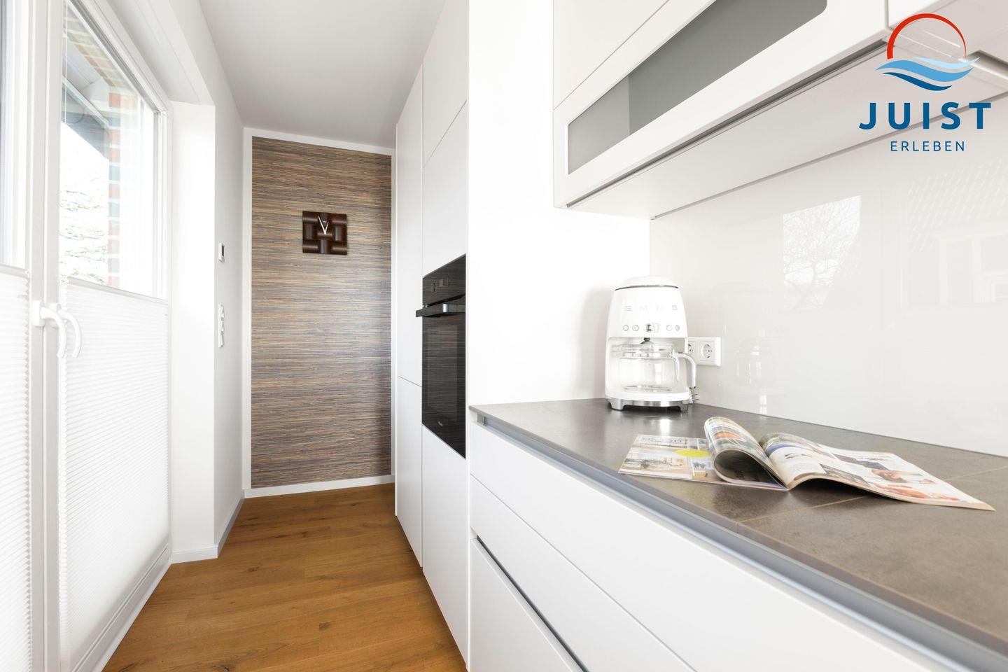 Die moderne Einbauküche verfügt u.a. über einen 4- Platten Herd sowie Backofen, Geschirrspüler, Kühlschrank, Kaffeemaschine, Wasserkocher und Toaster - so lassen sich auch im Urlaub schnell und einfach Gerichte zubereiten.