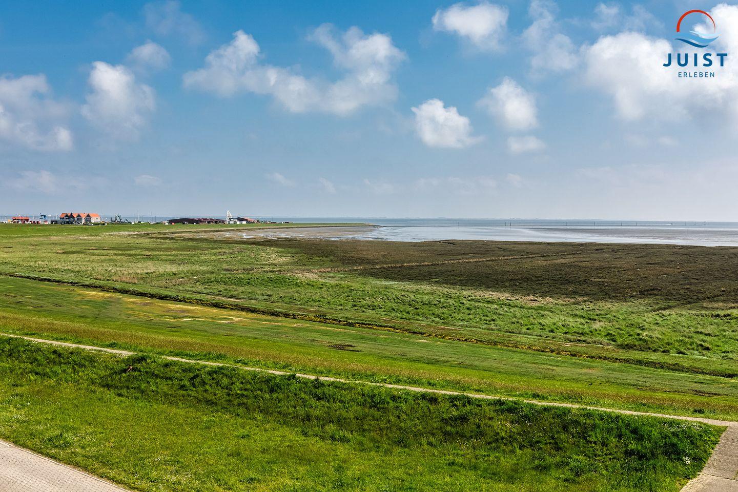 Von einem Schlafzimmer aus haben Sie einen direkte traumhaften Blick über die Salzwiesen und das Wattenmeer.