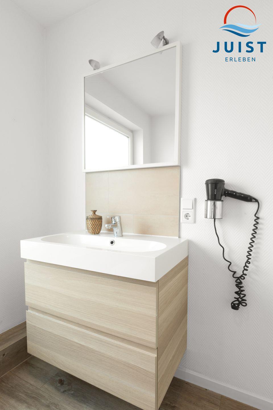 Im Erdgeschoss befindet sich das moderne Badezimmer mit Dusche.