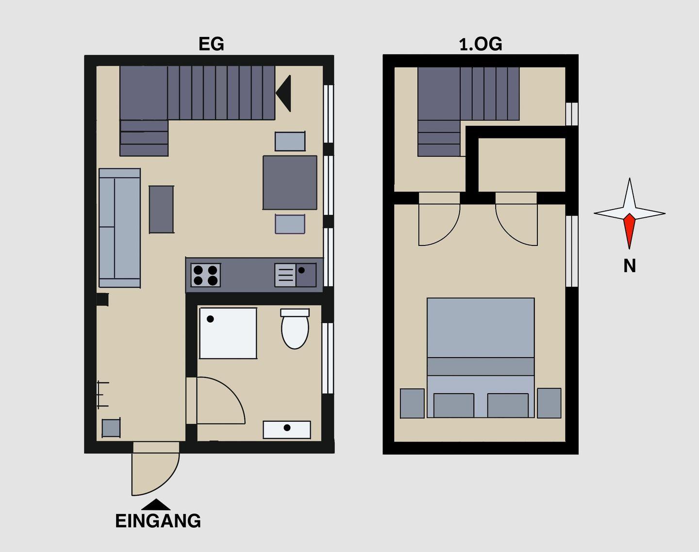 Die 54 m2 große Wohnung für 2 Personen verfügt über einen gemütlichen Wohnraum mit Couchecke, Essbereich, moderner Küche, ein Schlafbereich sowie ein Duschbad mit Fenster.