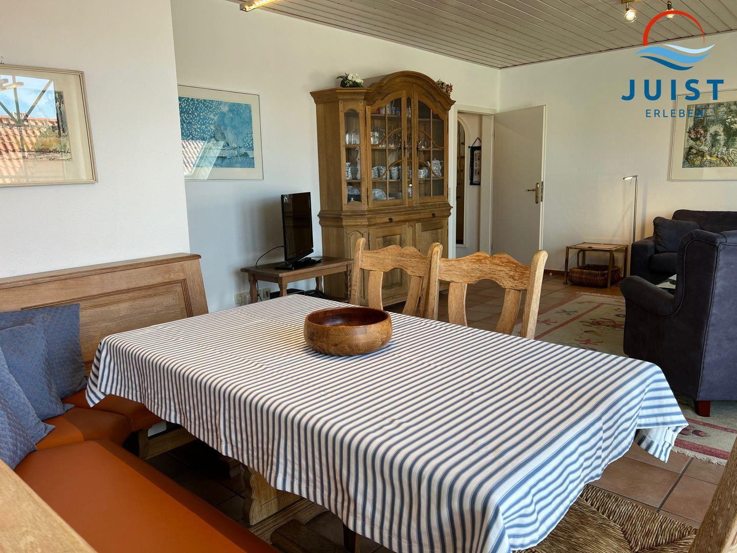 Der offene Wohn- und Essbereich bietet herrliche Möglichkeiten, Zeit mit der gesamten Familie zu verbringen. Der großzügige Wohnraum mit bequemer Couchecke, TV und Radio bietet wunderbare Möglichkeiten für eine erholsame Urlaubszeit, sei es bei einem lustigen Spiele- oder Fernsehabend oder einem leckeren Essen im Kreise der Familie.