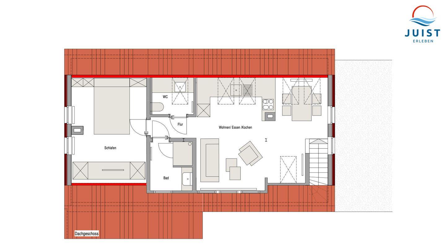 Sie haben auch die Möglichkeit, diese Wohnung zusammen mit der Wohnung „Sanddüne“ in der Parterre des Hauses zu buchen, die Platz für 6 weitere Personen bietet.