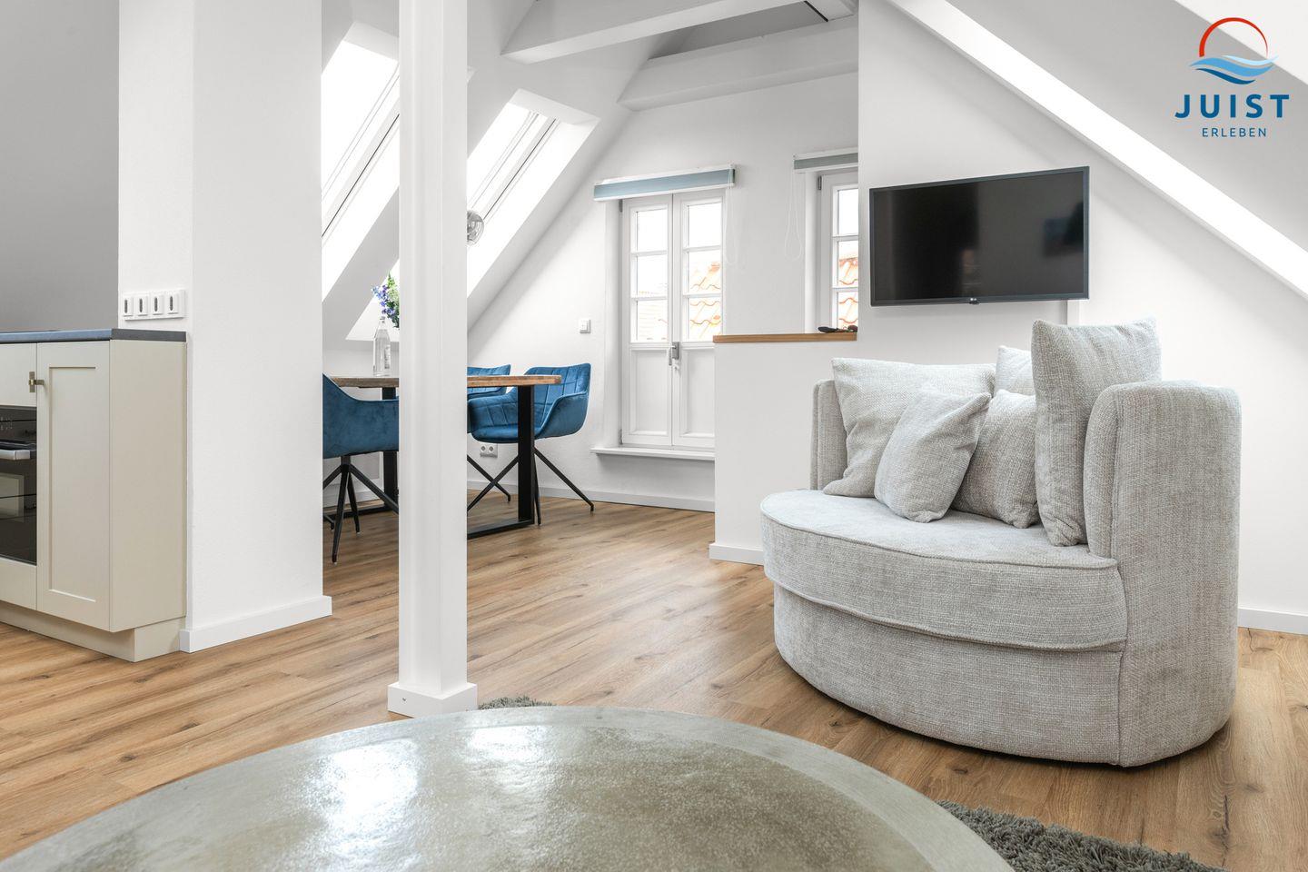 In der gemütlichen Couchecke mit Flachbildschirm und Musikbox können Sie unbeschwerte Stunden im Kreise der Familie oder mit Freunden genießen.