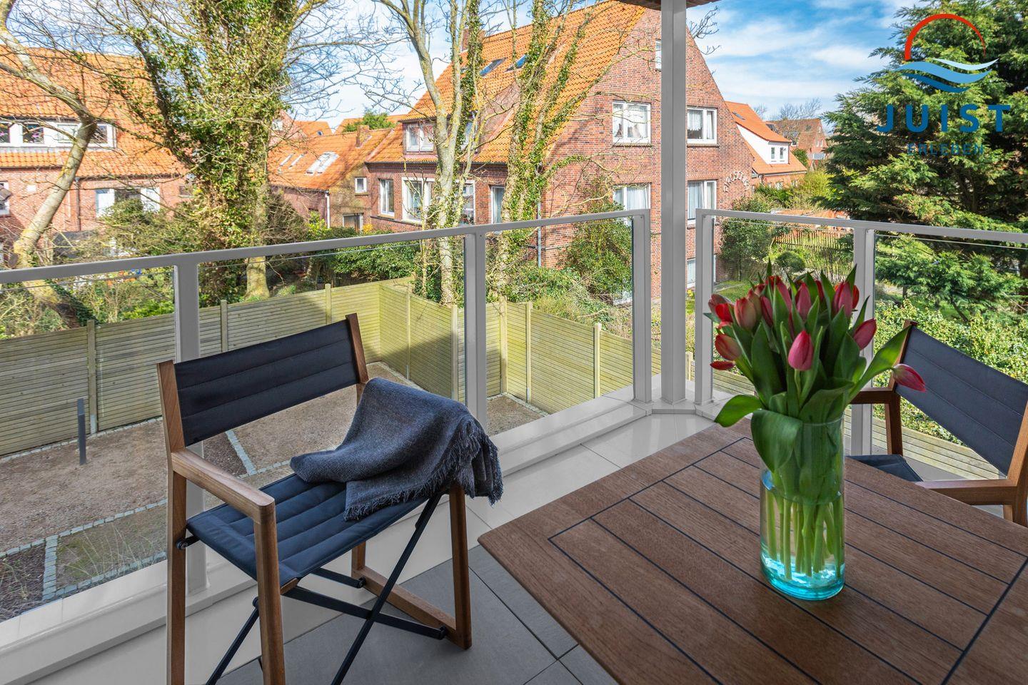 Der Balkon auf der Rückseite des Hauses bietet eine ungestörte Atmosphäre, ideal zum Entspannen und Träumen.