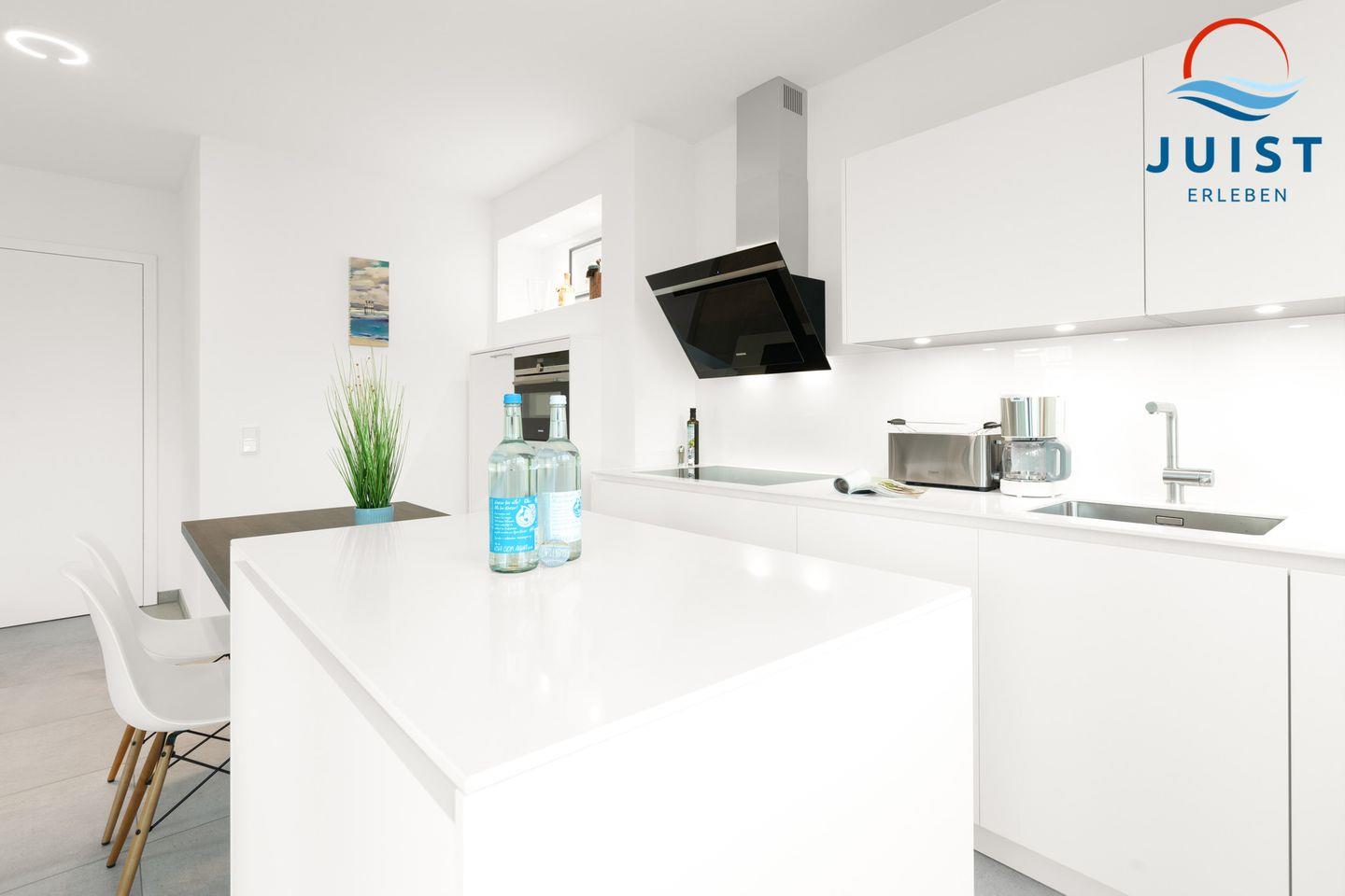 Die moderne Einbauküche ist komplett ausgestattet mit einem 4-Platten-Herd, Backofen, Geschirrspüler, Kühlschrank, Kaffeemaschine, Wasserkocher und Toaster, damit Sie auch im Urlaub schnell und einfach Gerichte zubereiten können.
