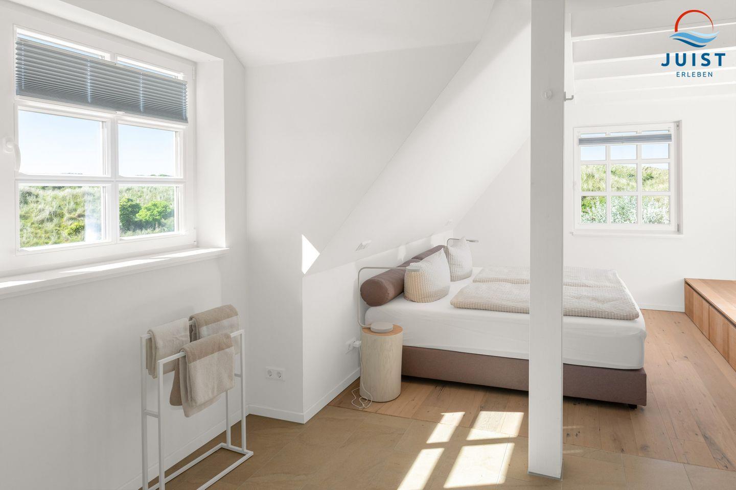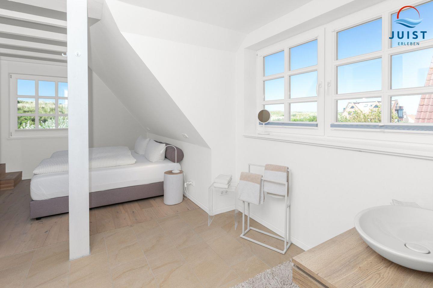 Eine besondere Note bietet die offene Schlafempore auf dem ausgebauten Spitzboden eines der Schlafzimmer, die Platz für bis zu 5 Gäste bietet und dazu einlädt, die Seele baumeln zu lassen.