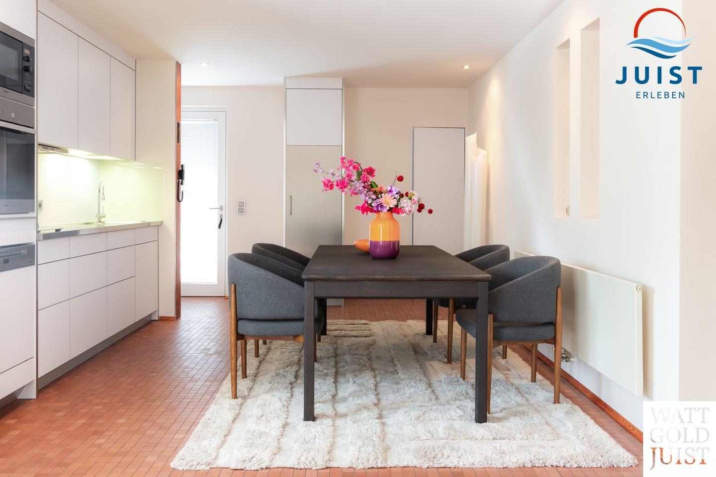 Diese erfüllt mit Geschirrspüler, Nespresso- und Filterkaffeemaschine, Backofen, Mikrowelle und einer vollumfänglichen Ausstattung höchste Ansprüche.
