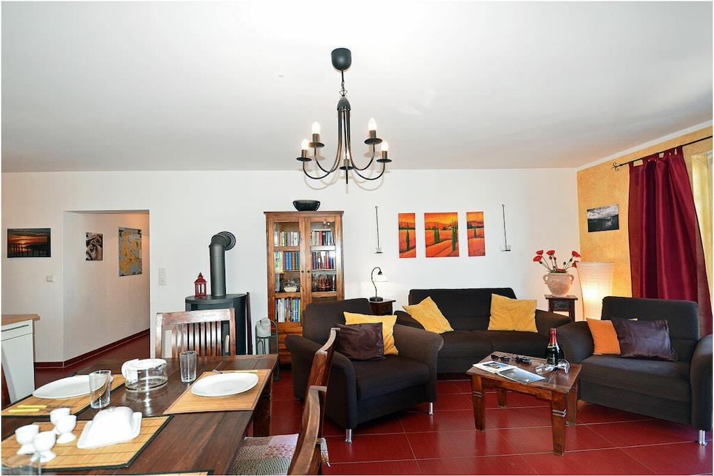 Only 25 m to the Baltic Sea sandy beach with sea view! up to 4 people with 2 bedrooms, high-quality furnishings, direct beach access, fireplace