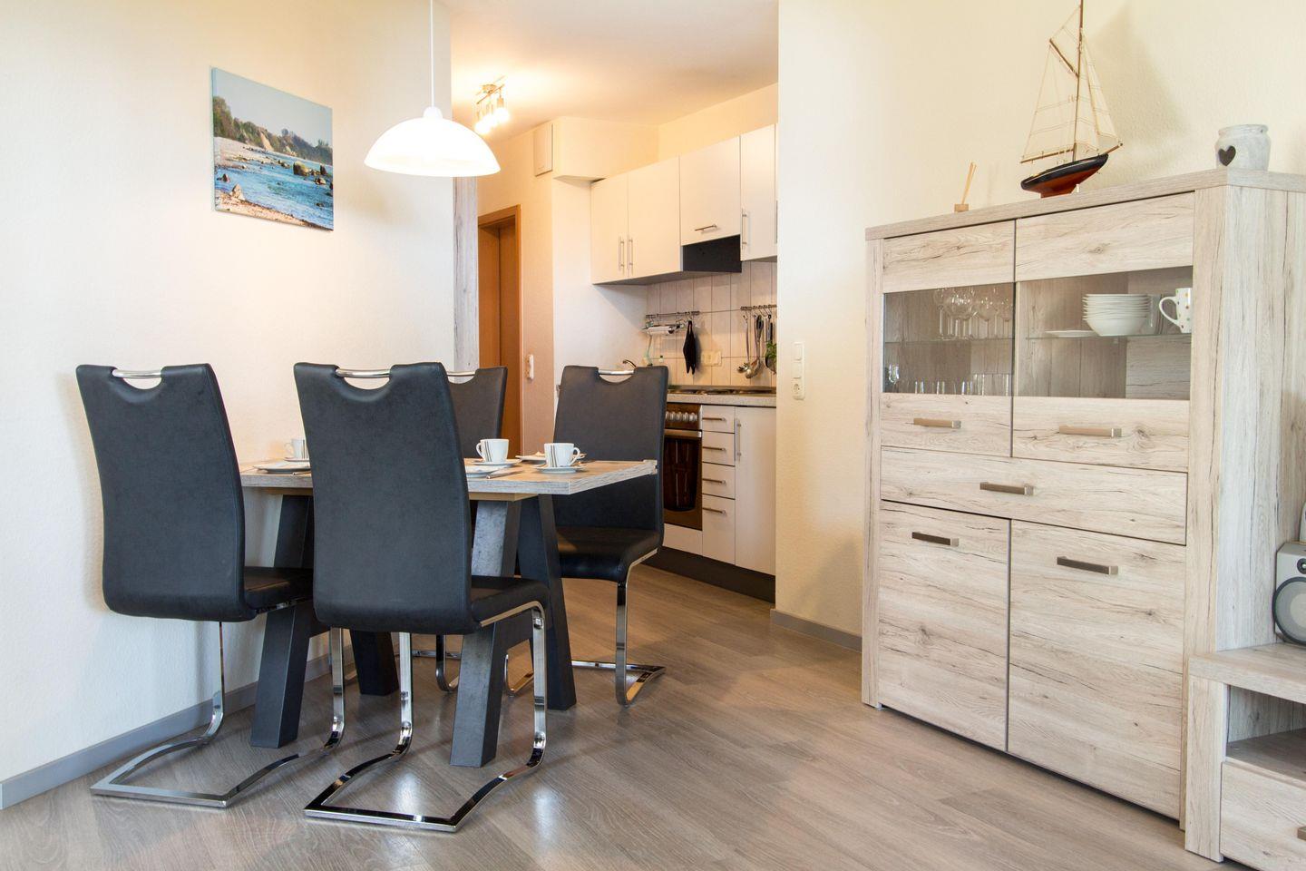 Die Ferienwohnung “Strandperle” liegt in ruhiger Lage, nur wenige Meter vom feinsandigen Strand der Schaabe entfernt. Die komfortable Ausstattung umfasst eine komplett eingerichtete Küche sowie einen möblierten Balkon zur Meerseite, auf dem Sie zum Klang des Meeresrauschen entspannen können. Eine dritte Person oder zwei Kinder bis 12 Jahre nächtigen bequem auf dem modernen Schlafsofa, zudem steht ein Kinderreisebett (ohne Bettzeug) und ein Kinderhochstuhl zur Verfügung. Ein eigener PKW-Stellplatz und ein Fahrradraum direkt am Haus bieten zusätzlichen Komfort, und in den Sommermonaten genießen Sie das Strandleben in Ihrem persönlichen, kostenfreien Strandkorb.